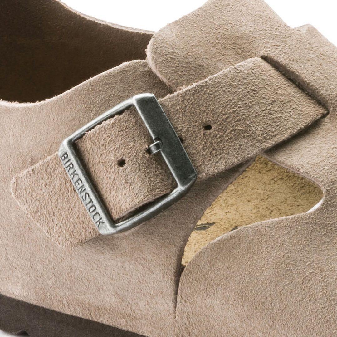 ビルケンシュトックの定番アイテムであるBoston/ボストンの、かかとが覆われたモデルがLondon/ロンドンです。シンプルなシームレスデザインのシューズで、裁ち端の風合いを生かし、ライニングのないナチュラルなアピアランスが特徴です。このデザインと極めて柔らかいレザーのアッパーによって、まるで自分の肌のようにぴったりと足にフィットします。