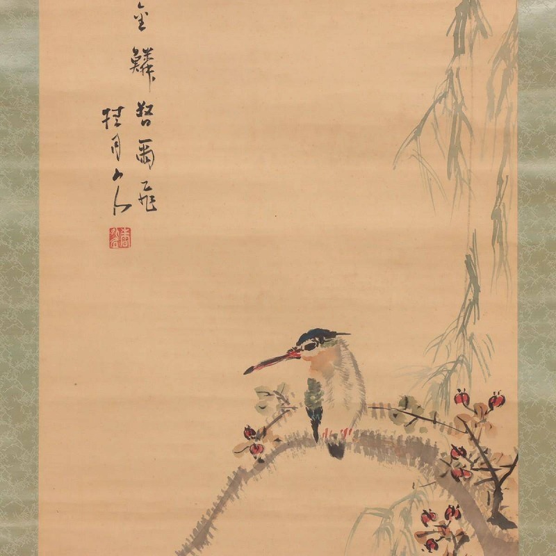 【真作】松林桂月 掛軸 絹本 肉筆 彩色 落款 印有 共箱 野口幽谷師事 南画家 明治時代 日本画 cd19-9791[TOM] | |