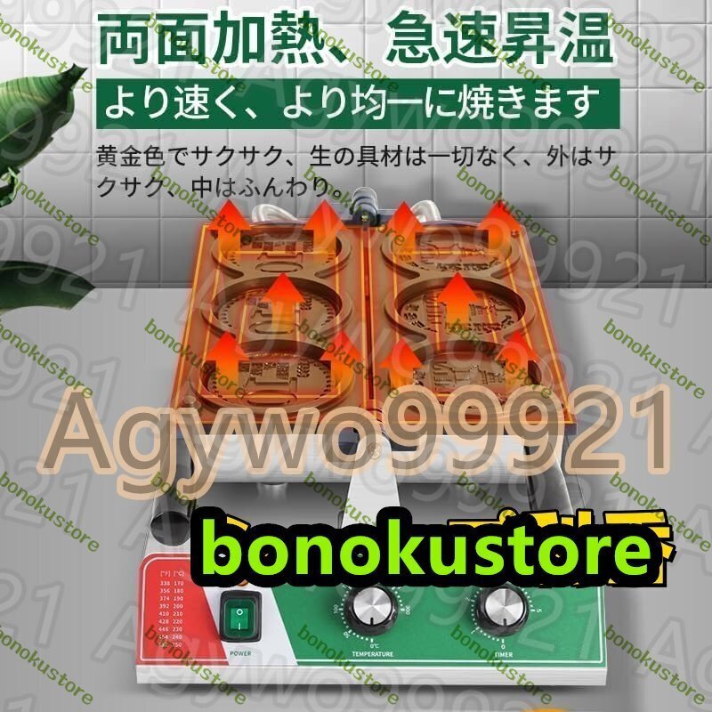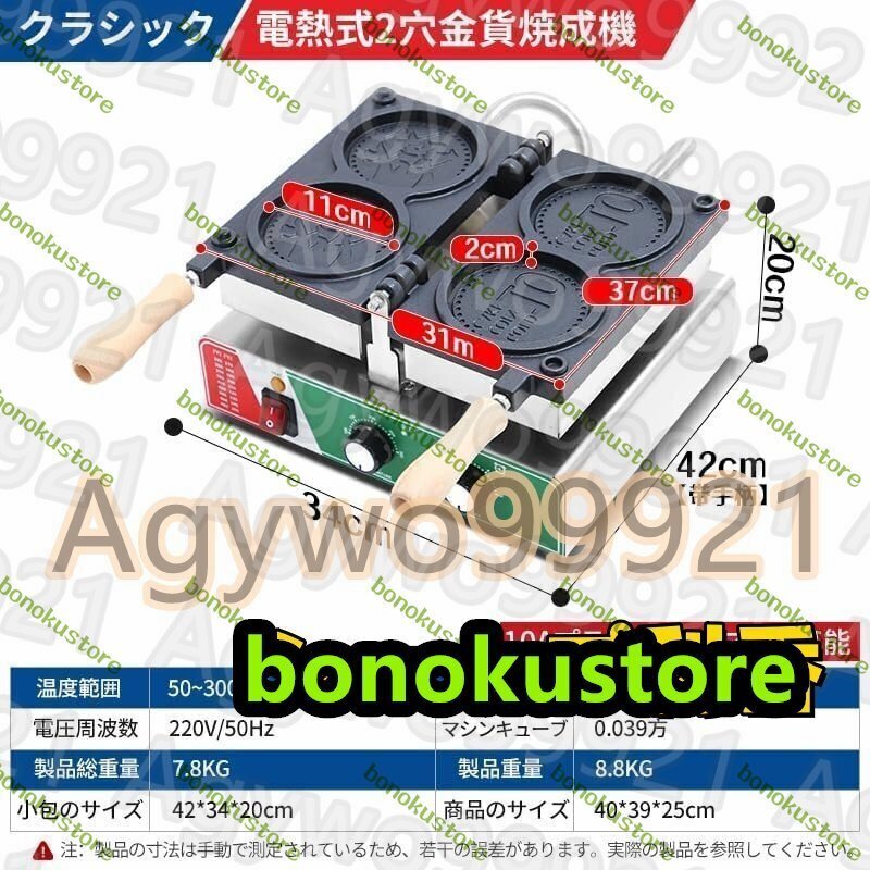 業務用金貨ワッフルメーカー 日本円・韓国ウォンワッフルメーカー,電熱ットエッグバブルパフアイロン、50-300℃調整可能、180°回転可能、ノンスティックテフロンコーティング付きステンレススチールベーカー ガス式/電熱式 (2穴・電熱式)