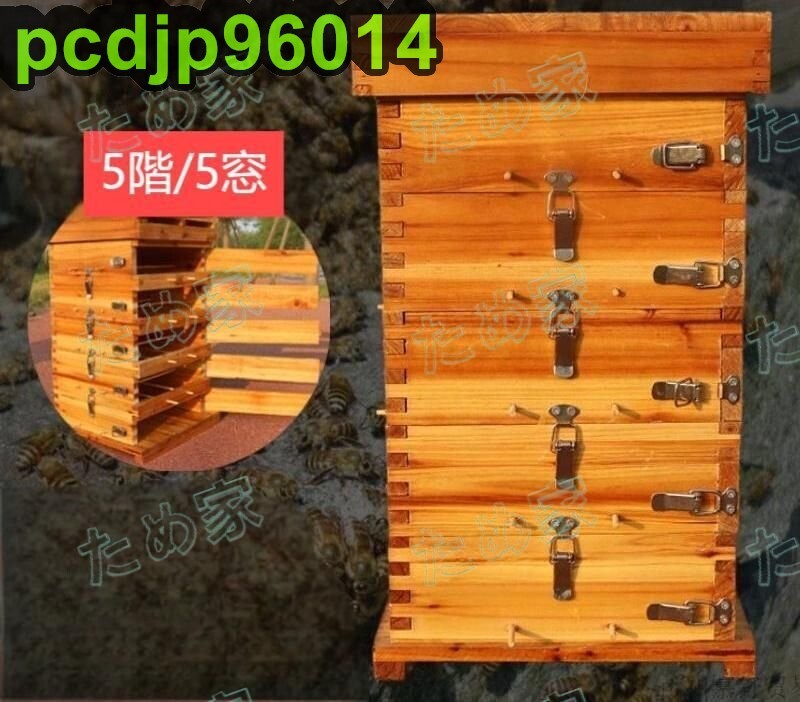 5階 蜜蜂巣箱 ミツバチ 巣箱 重箱式 養蜂箱 杉材 蜂ハイブ 格子箱 煮蝋 蜜蜂飼育箱 巣枠不要 自然造蜜 防水性と防食性5窓
