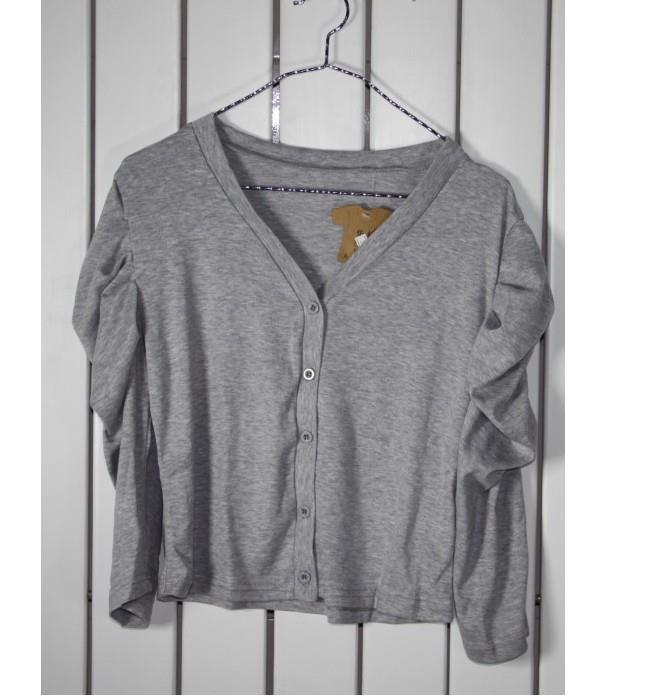 カーディガン,ショート丈,長袖,パフスリーブ,ニット,ジャケット,グレー