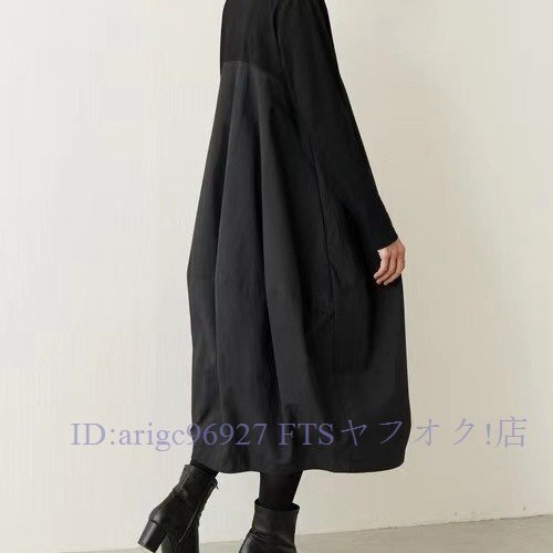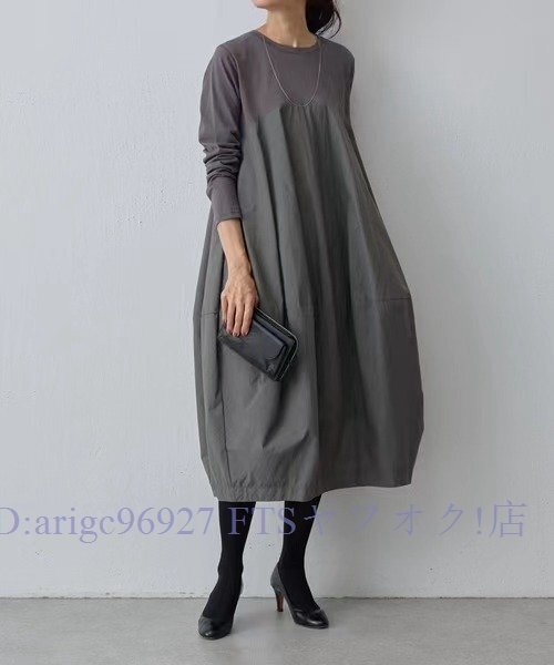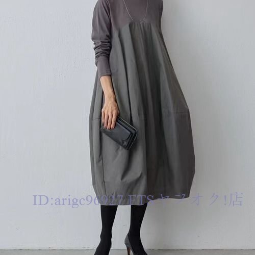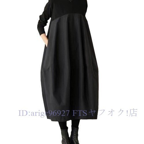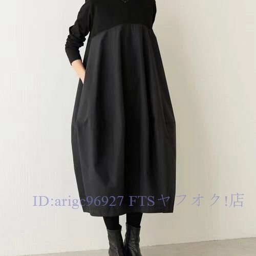 B3027☆新品TEE素材とコットン風な切り替えがおしゃれなロング丈ワンピ大きいサイズハイウエストでゆったり着回し