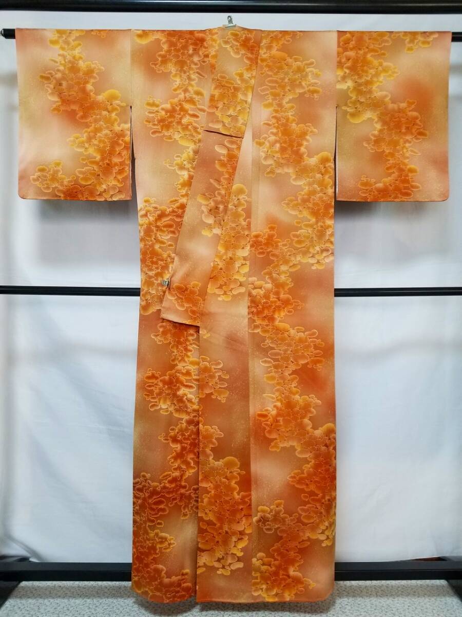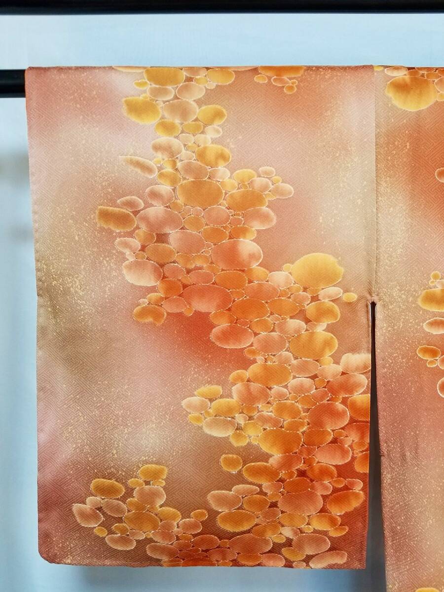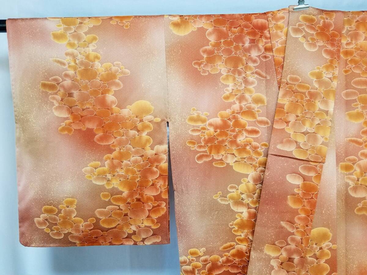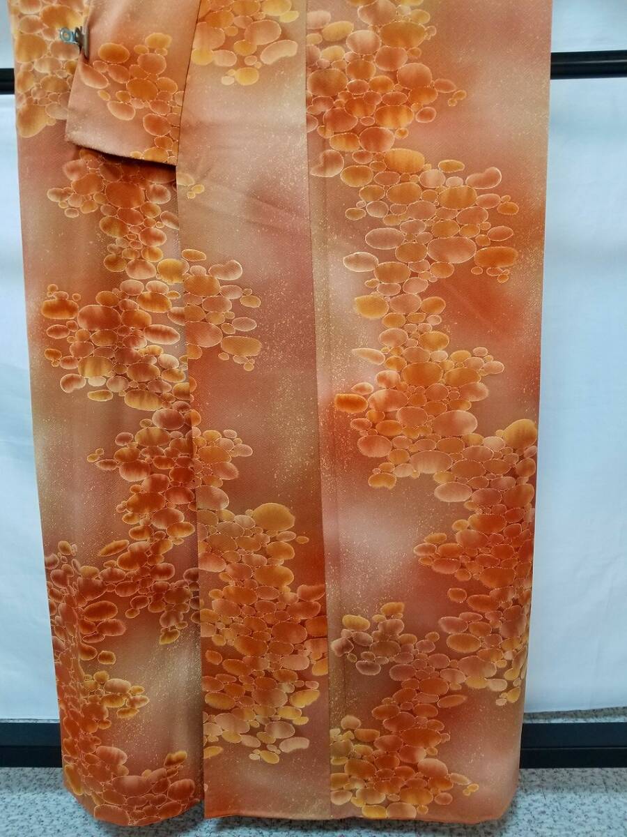 *手縫い仕立て品 *中古品 *着用感ない *訳有品 {訳有品」 ☆剣先の胴裏地「正絹羽二重地」が淡黄色です「他の箇所の裏地.正絹羽二重地」は純白色です {生地} ☆正絹 丹後 一越縮緬地 {重目地} ☆着物重さ 約 880g {地色} ☆「胡桃色*くすんだ黄赤色」と「テラコッタ色*くすんだ黄みの赤色」での暈し染地に砂をまき散らしたような本蝋結.タタキ染加工 {文様} ☆本蝋結染加工の「大小の図案丸文」 {八掛地} ☆正絹 精華縮緬地{オレンジ色}**美品 ◎消費税は.お預かりしておりません◎ {寸法} 身丈 {肩山から裾まで} 約160cm 裄丈 約63cm {袖付け縫い代 袖側 約1.5cm 身側 約2.5cm} 袖丈 約49.5cm 袖幅 約32.5cm 前幅 約26.5cm 後幅 約29.5cm *広衿「スナップ付き」 *袖口には表地と共生地の人形止め付き ◎t6227jp 桐輪 「呉服の桐正」でも色々と出品しております** (発送方法) ●大阪から ゆうぱっく発送 80サイズ{補償あり}**おてがる配送 {注意事項} (注意事項 必ずお読みください!) ★基本的に土、日、祝日、ゴールデンウィーク、お盆、年末年始はお休みさせて頂いておりますので、ご連絡が遅れる場合もございますので、ご了承ください。 ★どうぞ自己紹介欄も、是非御覧になって下さいませ。 ★落札後にヤフーから届くメールに、メッセージを記載しておりますので、そちらも必ずご覧下さいませ。 ●当方、ストア出品ではなく、一日中パソコンに向かっておらず、ご連絡は夜になる事が多いです。その点御理解の上、ご入札下さい。 ●お急ぎの場合など、到着希望の日にちが特に近い場合、ご要望にお答えできかねる場合もございます。 もちろん、出来る限り、早急に対応はさせて頂きますが、その点は、何卒ご了承下さいませ。 入札前に、発送が間に合うかご質問頂けるとありがたいです ★★基本的に返品、クレームはお受け致しておりませんが、万が一、商品に不都合(大幅な寸法間違い 記載以外の着用不可能な位の、大きなシミ、傷みなどの見落とし)などがございました場合、まず、取引ナビにてご連絡下さいませ。 迅速に対応させて頂きます。 ただし ●商品がお客様の元に到着後、1週間以上経過したもの。 ●お客様側で加工など、手を加えた物。 ●お色目が、思っていたものと違っていた、または、思っていた感じと違っていた。 (画像はできるだけ実物に近い色で写るように努力していますが、素人の撮影ですので、どうしてもPCによって多少違ってくる事があります。 出来るだけ、分かりやすいように説明は入れさせて頂きます。分かりにくい場合、ご質問下さい。) 以上につきましては、対応出来ませんので、ご理解下さい。 ★複数商品の落札予定のある場合、ご連絡頂きましたら、1週間程でしたら、お取り置させて頂きます。 お気軽に、お申し出下さいませ。 ★送料は、1個で発送が無理な場合は、こちらよりご連絡させて頂きます。 | |||
