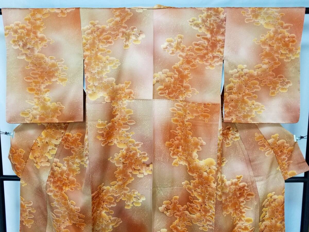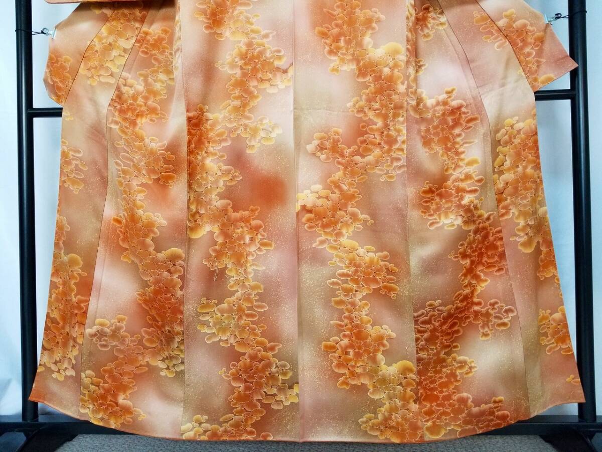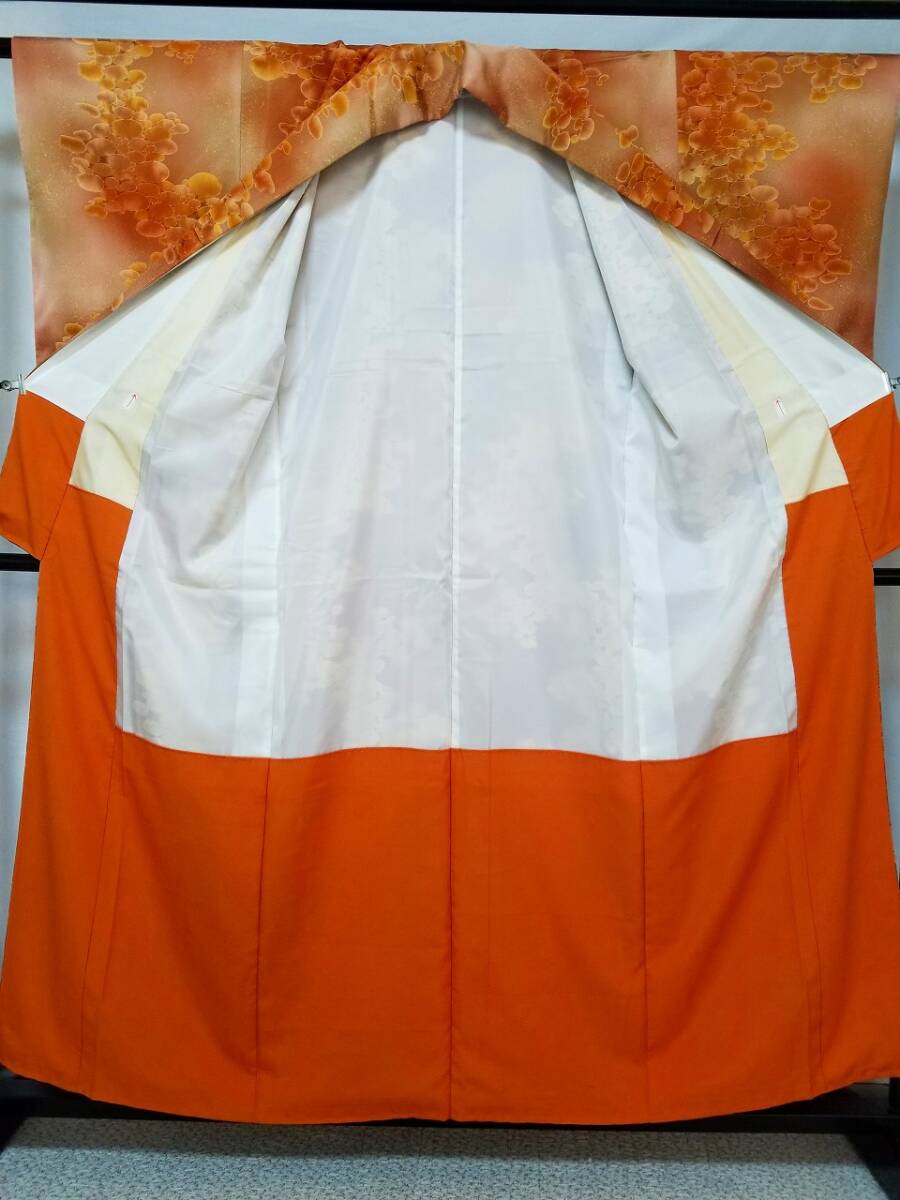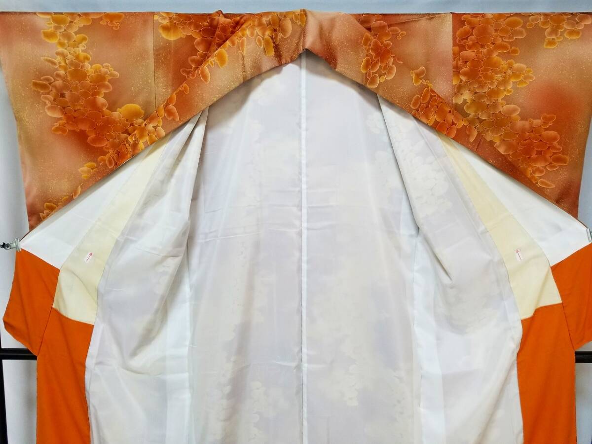 *手縫い仕立て品 *中古品 *着用感ない *訳有品 {訳有品」 ☆剣先の胴裏地「正絹羽二重地」が淡黄色です「他の箇所の裏地.正絹羽二重地」は純白色です {生地} ☆正絹 丹後 一越縮緬地 {重目地} ☆着物重さ 約 880g {地色} ☆「胡桃色*くすんだ黄赤色」と「テラコッタ色*くすんだ黄みの赤色」での暈し染地に砂をまき散らしたような本蝋結.タタキ染加工 {文様} ☆本蝋結染加工の「大小の図案丸文」 {八掛地} ☆正絹 精華縮緬地{オレンジ色}**美品 ◎消費税は.お預かりしておりません◎ {寸法} 身丈 {肩山から裾まで} 約160cm 裄丈 約63cm {袖付け縫い代 袖側 約1.5cm 身側 約2.5cm} 袖丈 約49.5cm 袖幅 約32.5cm 前幅 約26.5cm 後幅 約29.5cm *広衿「スナップ付き」 *袖口には表地と共生地の人形止め付き ◎t6227jp 桐輪 「呉服の桐正」でも色々と出品しております** (発送方法) ●大阪から ゆうぱっく発送 80サイズ{補償あり}**おてがる配送 {注意事項} (注意事項 必ずお読みください!) ★基本的に土、日、祝日、ゴールデンウィーク、お盆、年末年始はお休みさせて頂いておりますので、ご連絡が遅れる場合もございますので、ご了承ください。 ★どうぞ自己紹介欄も、是非御覧になって下さいませ。 ★落札後にヤフーから届くメールに、メッセージを記載しておりますので、そちらも必ずご覧下さいませ。 ●当方、ストア出品ではなく、一日中パソコンに向かっておらず、ご連絡は夜になる事が多いです。その点御理解の上、ご入札下さい。 ●お急ぎの場合など、到着希望の日にちが特に近い場合、ご要望にお答えできかねる場合もございます。 もちろん、出来る限り、早急に対応はさせて頂きますが、その点は、何卒ご了承下さいませ。 入札前に、発送が間に合うかご質問頂けるとありがたいです ★★基本的に返品、クレームはお受け致しておりませんが、万が一、商品に不都合(大幅な寸法間違い 記載以外の着用不可能な位の、大きなシミ、傷みなどの見落とし)などがございました場合、まず、取引ナビにてご連絡下さいませ。 迅速に対応させて頂きます。 ただし ●商品がお客様の元に到着後、1週間以上経過したもの。 ●お客様側で加工など、手を加えた物。 ●お色目が、思っていたものと違っていた、または、思っていた感じと違っていた。 (画像はできるだけ実物に近い色で写るように努力していますが、素人の撮影ですので、どうしてもPCによって多少違ってくる事があります。 出来るだけ、分かりやすいように説明は入れさせて頂きます。分かりにくい場合、ご質問下さい。) 以上につきましては、対応出来ませんので、ご理解下さい。 ★複数商品の落札予定のある場合、ご連絡頂きましたら、1週間程でしたら、お取り置させて頂きます。 お気軽に、お申し出下さいませ。 ★送料は、1個で発送が無理な場合は、こちらよりご連絡させて頂きます。 | |||