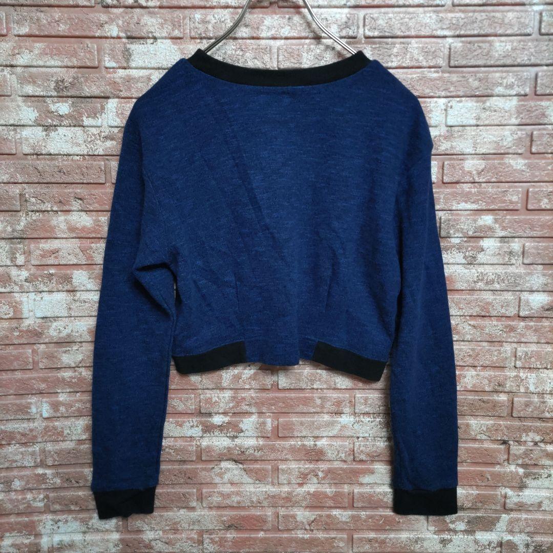 【The way of chic】ショート丈 長袖プルトップス ブルー