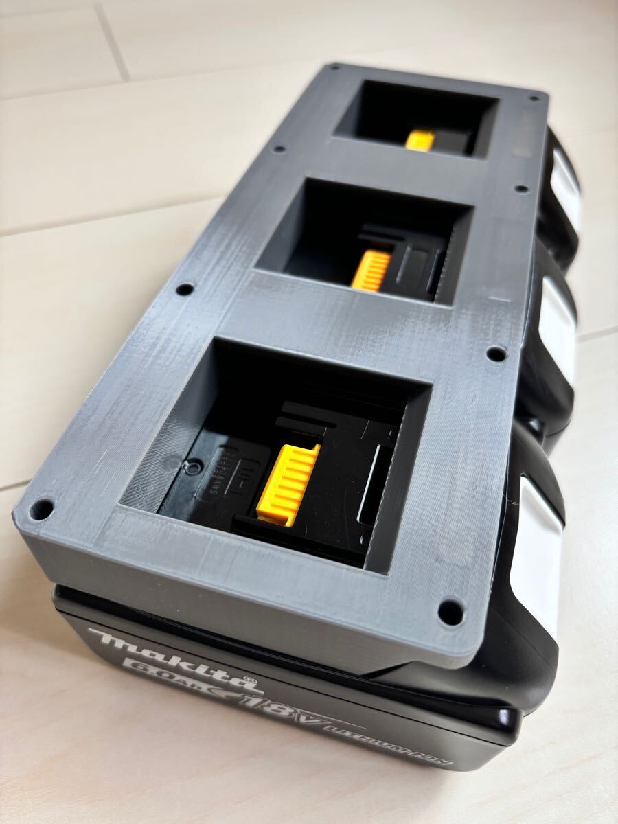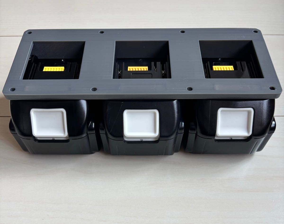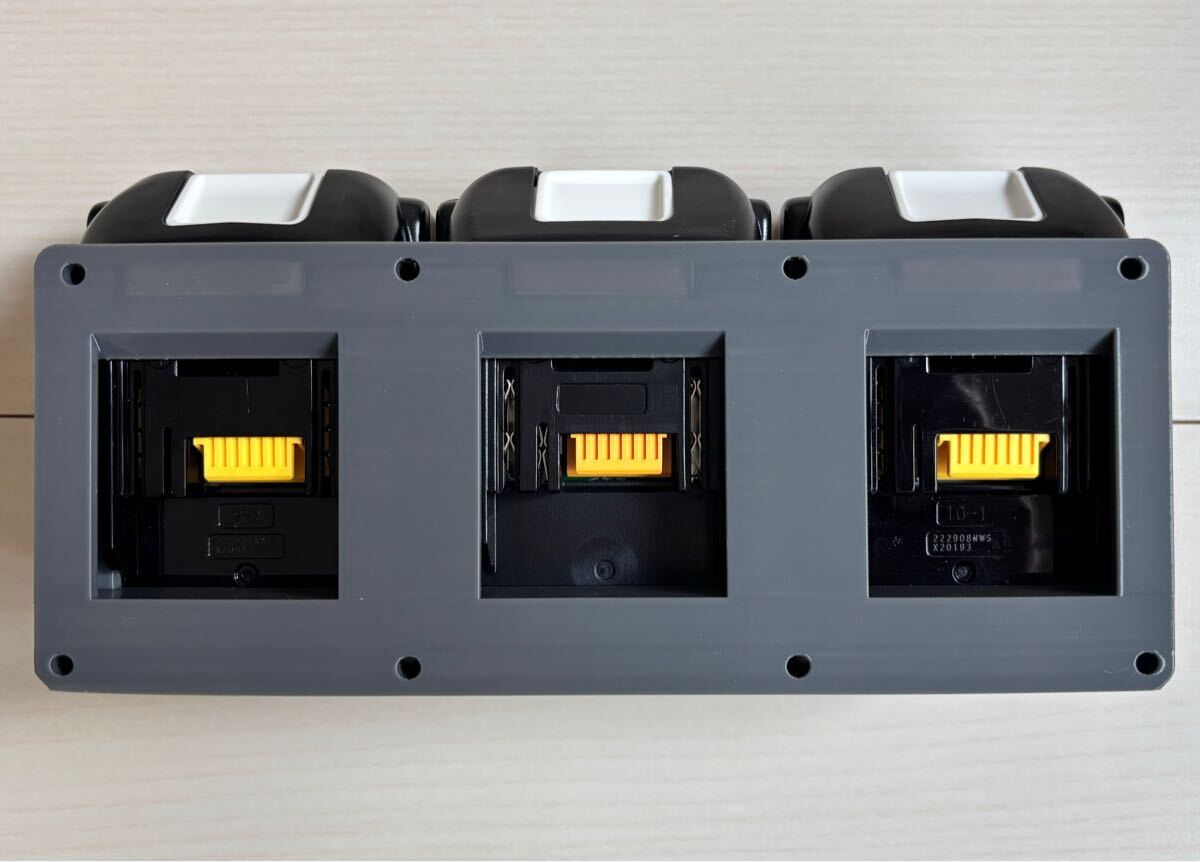 マキタの充電式バッテリー最大3個を、壁やボード裏に取り付けできる、ロック対応のバッテリーホルダーです。