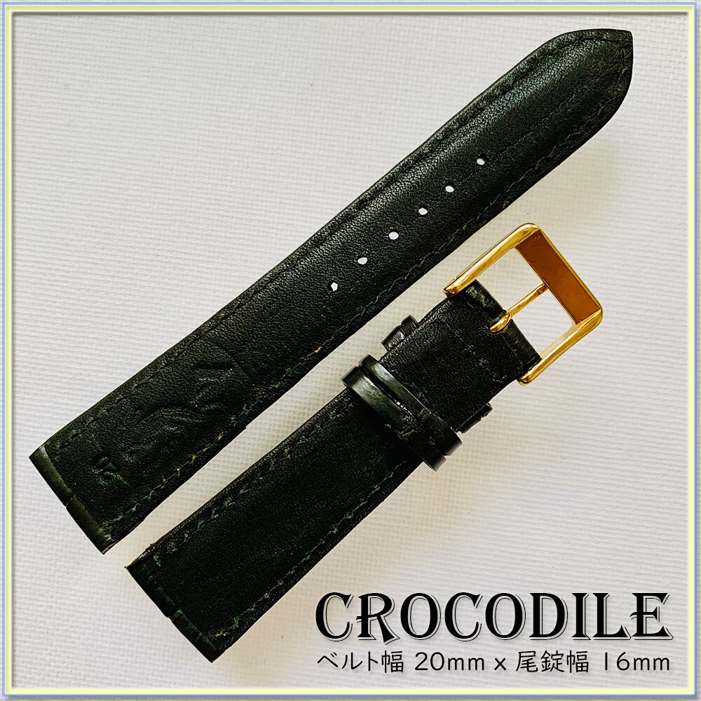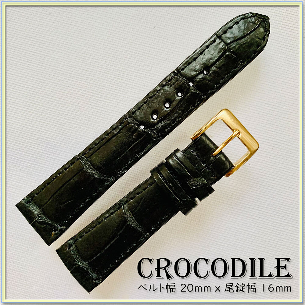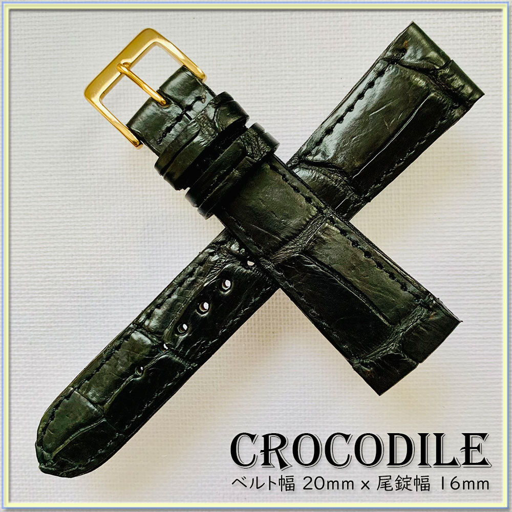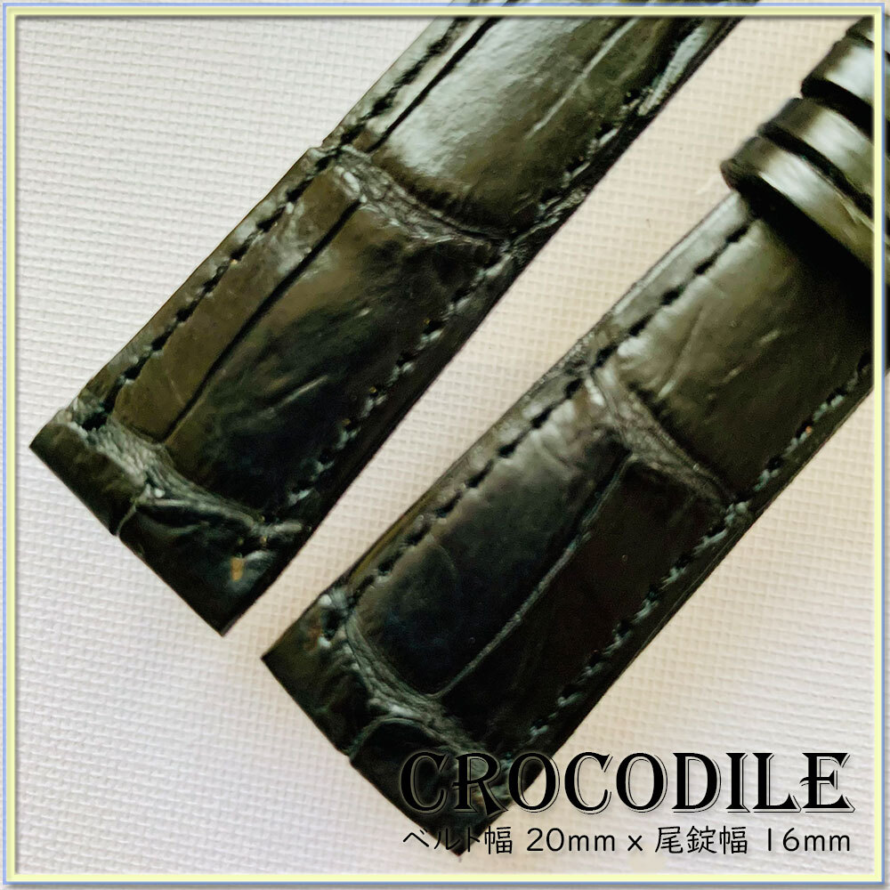 特選 20mm 1点物 本革 クロコダイル ワニ革 時計ベルト イタリアンブラック ITALIAN BLACK 高級 クロコ 竹符模様 職人技 限定 刻印 艶消