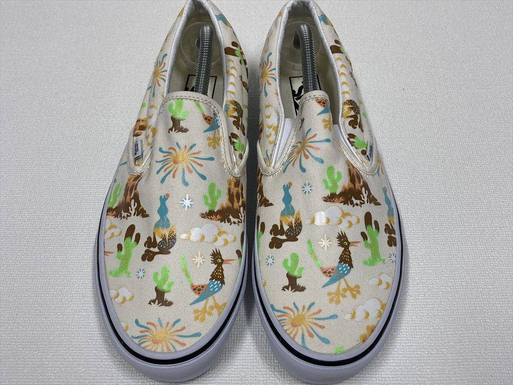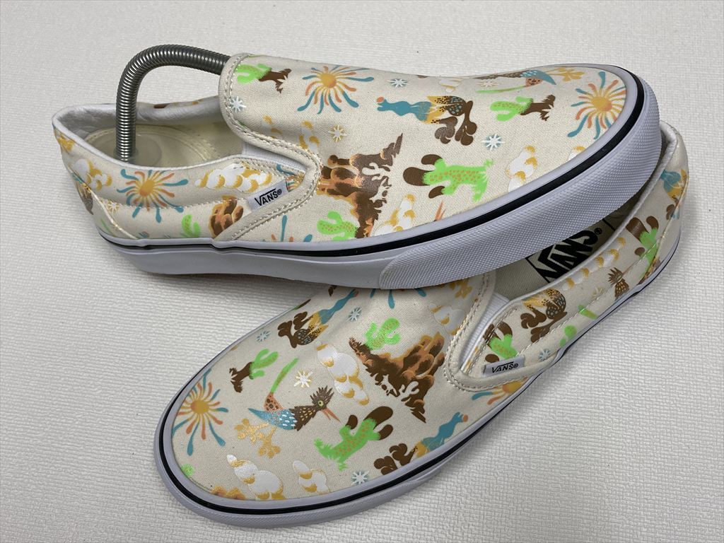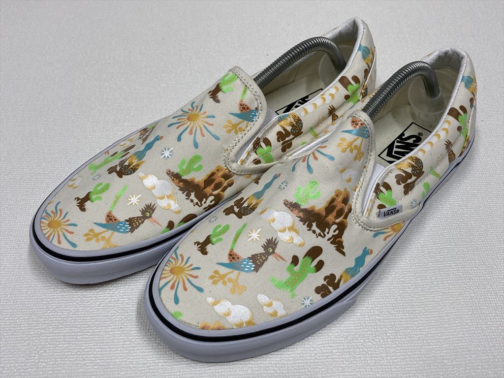 レア!! VANS SLIPON 生成り ベージュ 鳥 サボテン 総柄 US10 (28cm) アメリカ企画限定!! スリッポン バンズ