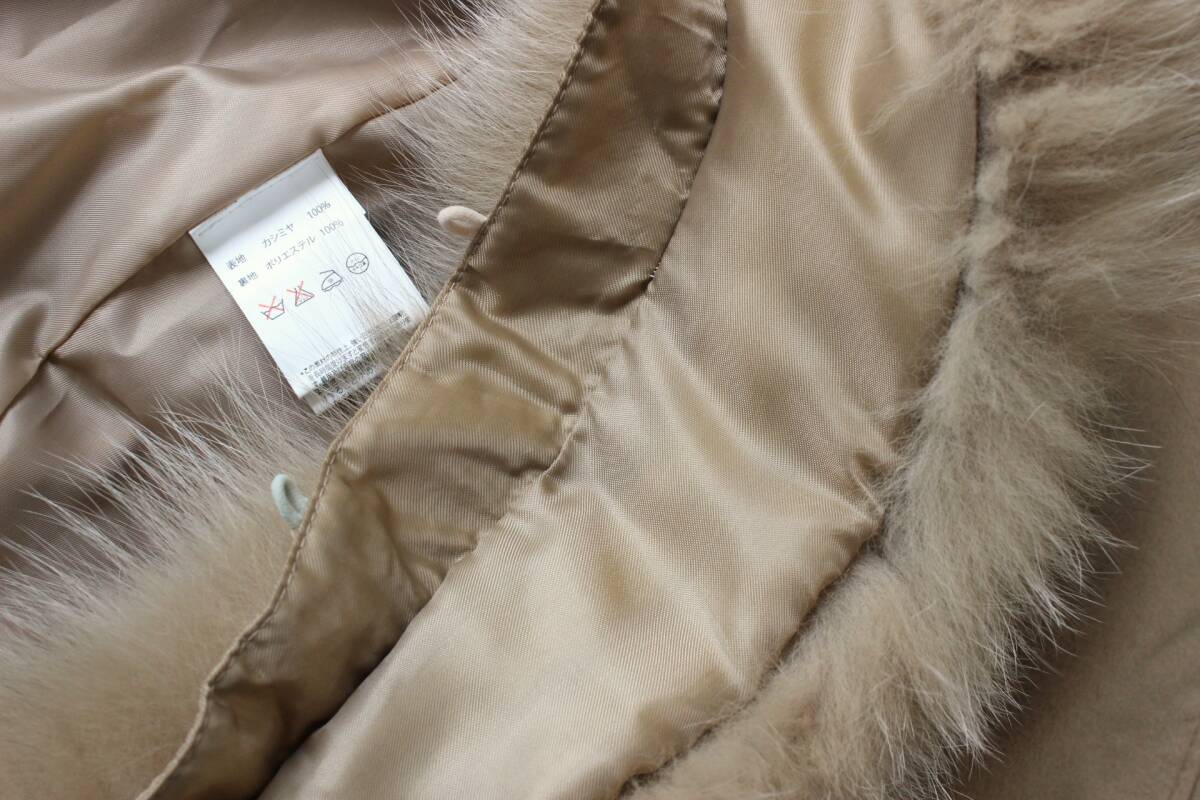 L49【美品】カシミヤコート M フォックスファー付き レディース 9号 カシミア100% 総カシミヤ ベージュ tqe RIGEL 女性用 ★美品★