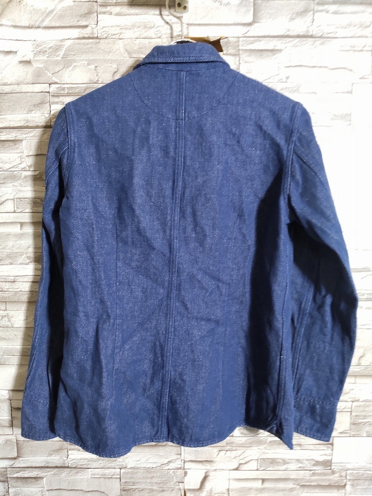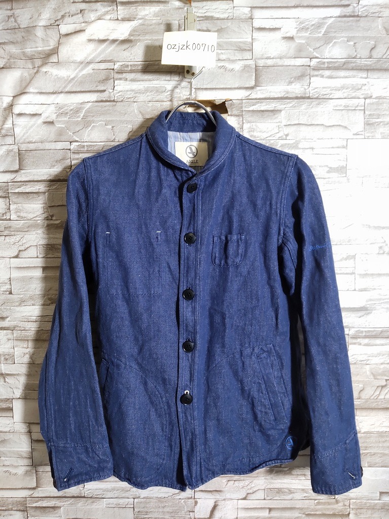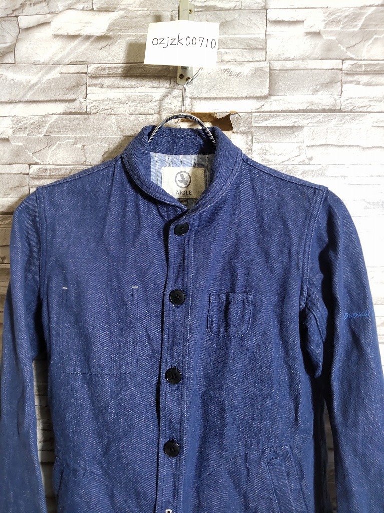 women's I467 AIGLE エーグル ショールカラー ボタンアップ インディゴ ジャケット S ブルー デニム コットンリネン