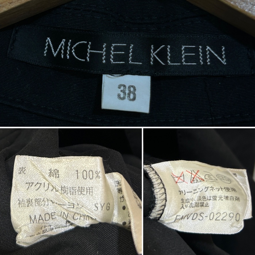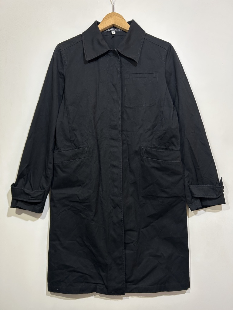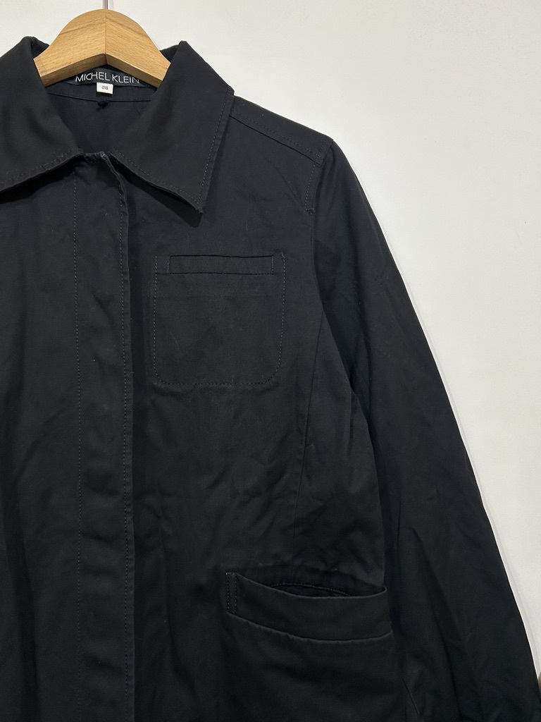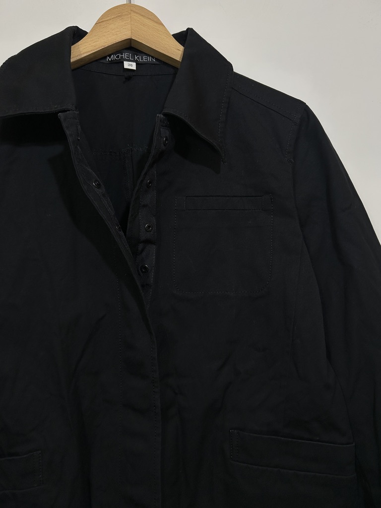 ▼ MICHEL KLEIN 長袖 コットンシャツ ワンピース風 コート 黒 ブラック 無地 38 フルスナップ アウター 羽織り ステンカラーコート