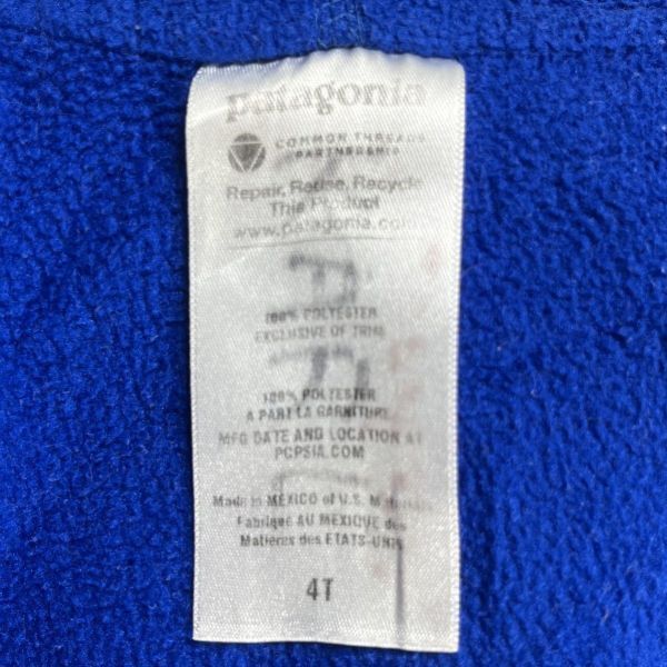 ■ 子供用 00s 2013年製 Patagonia パタゴニア フリース フルジップ パーカー インナー サイズ4T 青 古着 キッズ服 アウトドア アメカジ ■