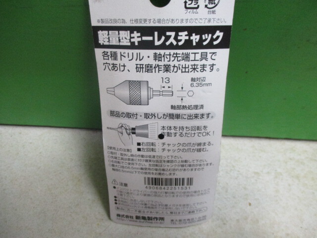 ドリルチャック キーレスタイプ 新品