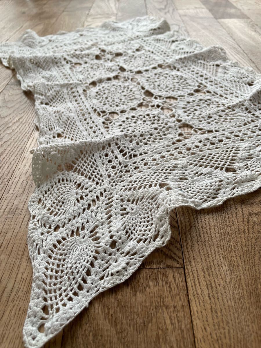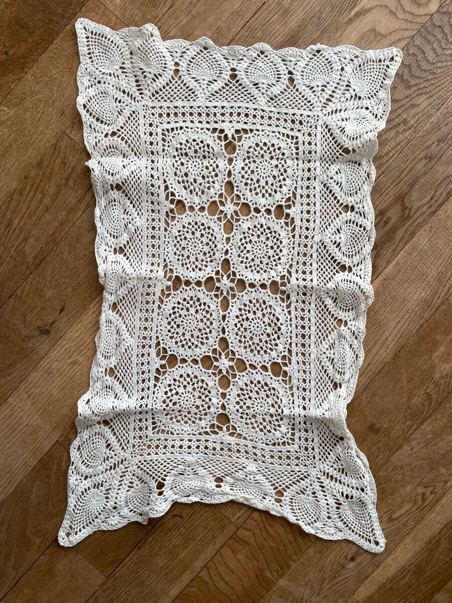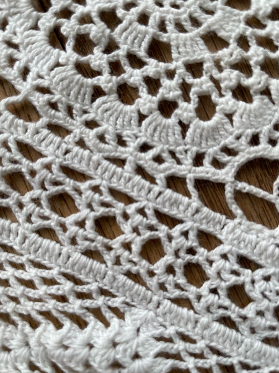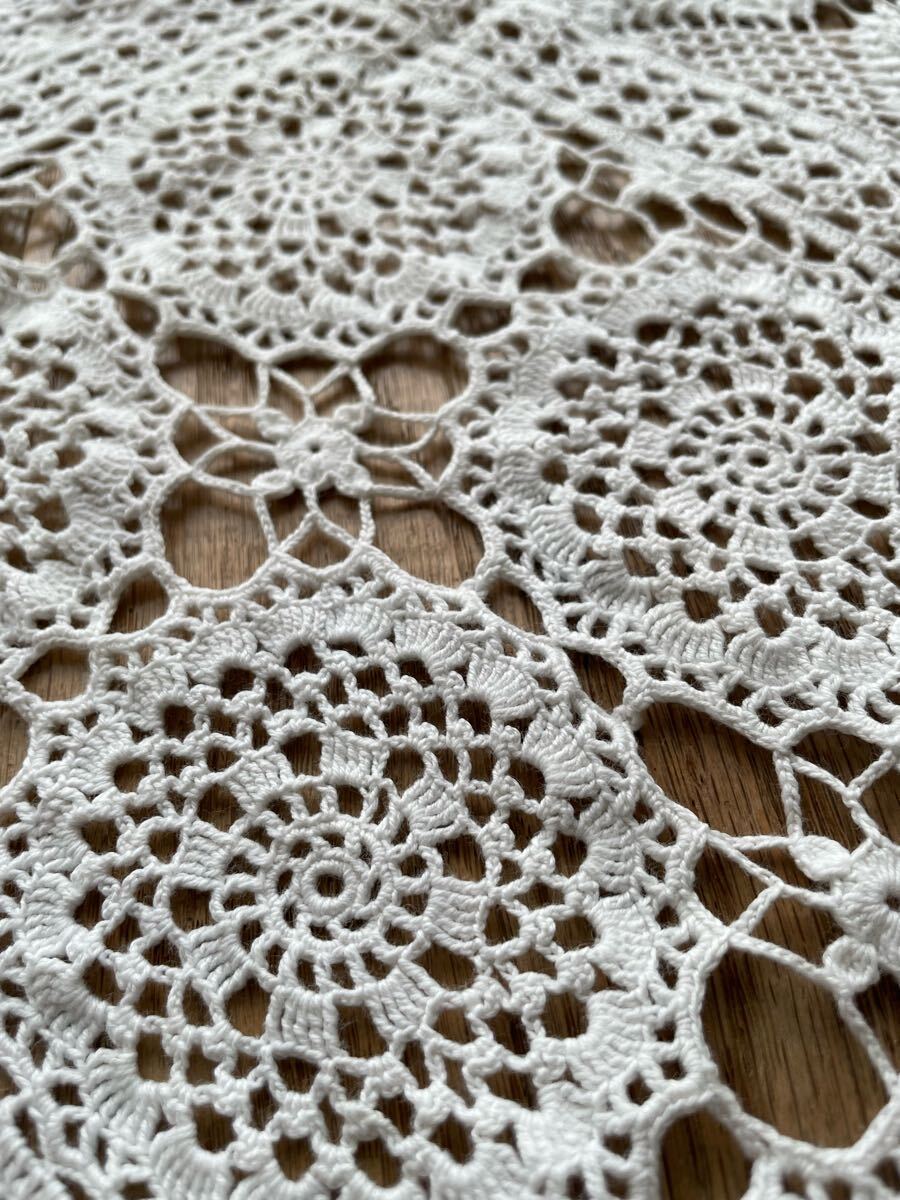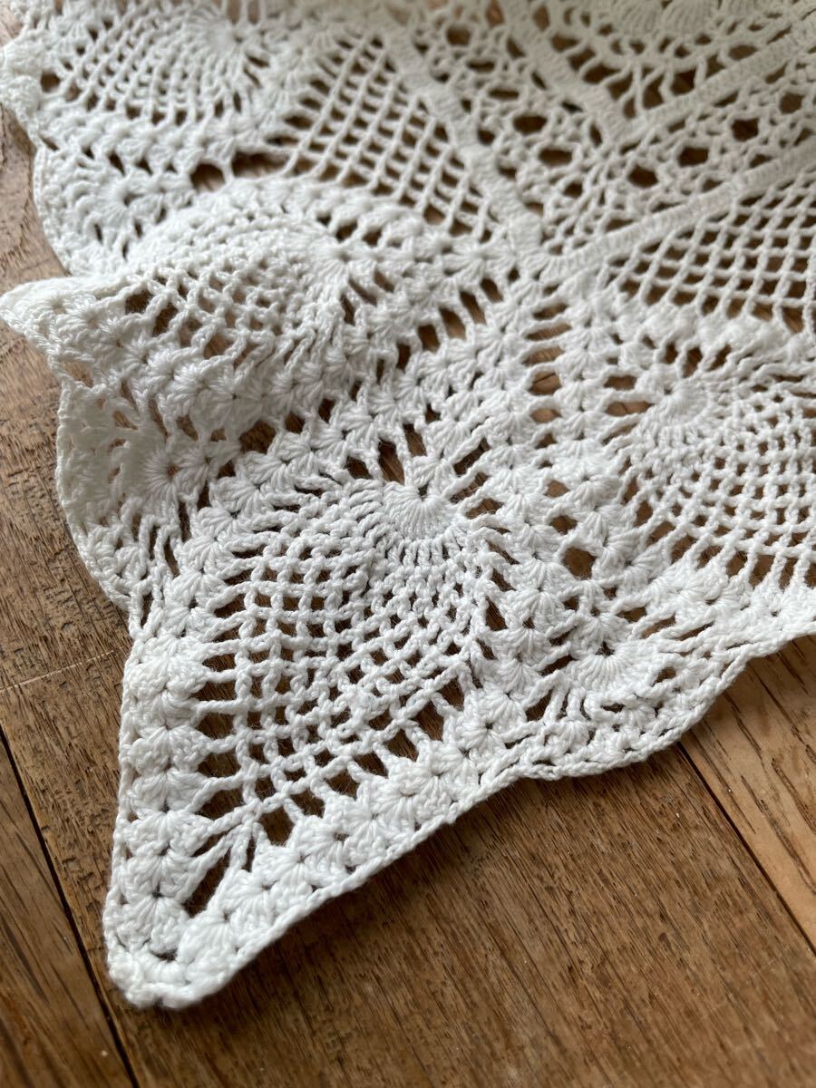 こちらは、ハンドメイドの美しいレース編みクロスです。