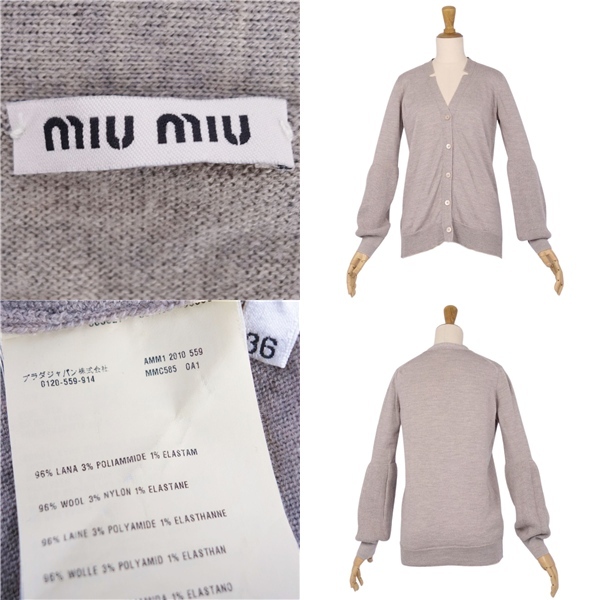 | 美品 ミュウミュウ miumiu カーディガン ニット ウール トップス レディース イタリア製 36 グレー |