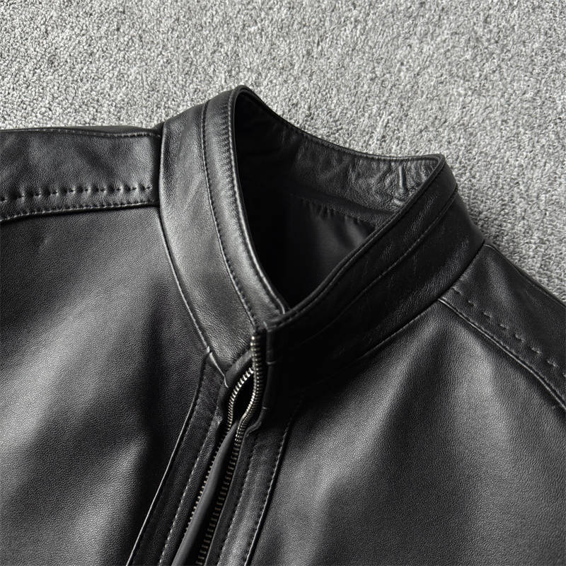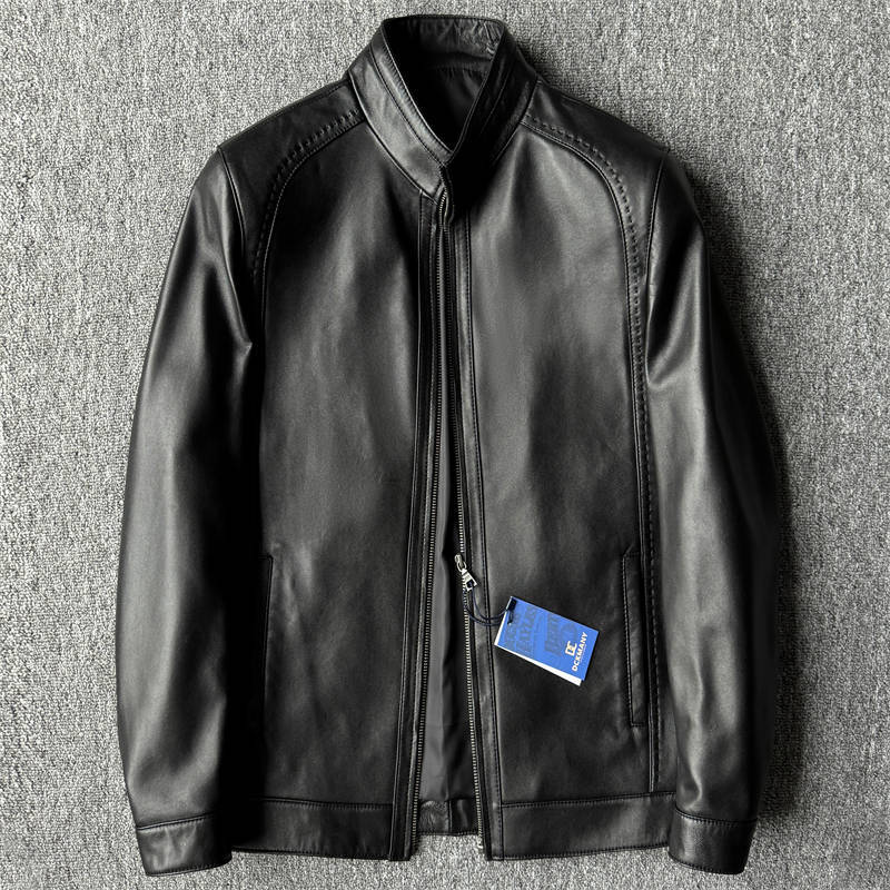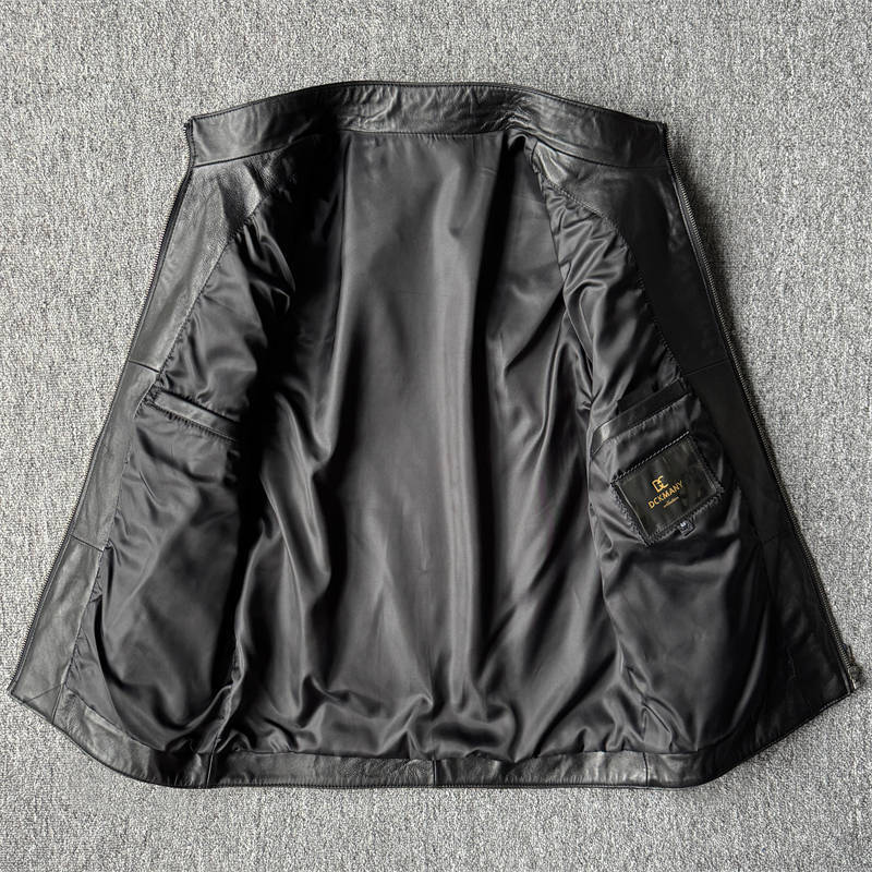 W9948-XL/黒色 「新作★革ジャン」 DCKMANY新品 メンズ 光沢 本革 細身 羊革 至高の逸品 ドライビングコート ライダース ジャケット    【 メンズ レザーライダースジャケット 上品でクールな印象 】