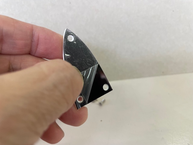 取り付けねじ穴のピッチが二等辺三角形の長い方で直線計測で38mm、短い方が19mm、厚さが1.55mmとなります。