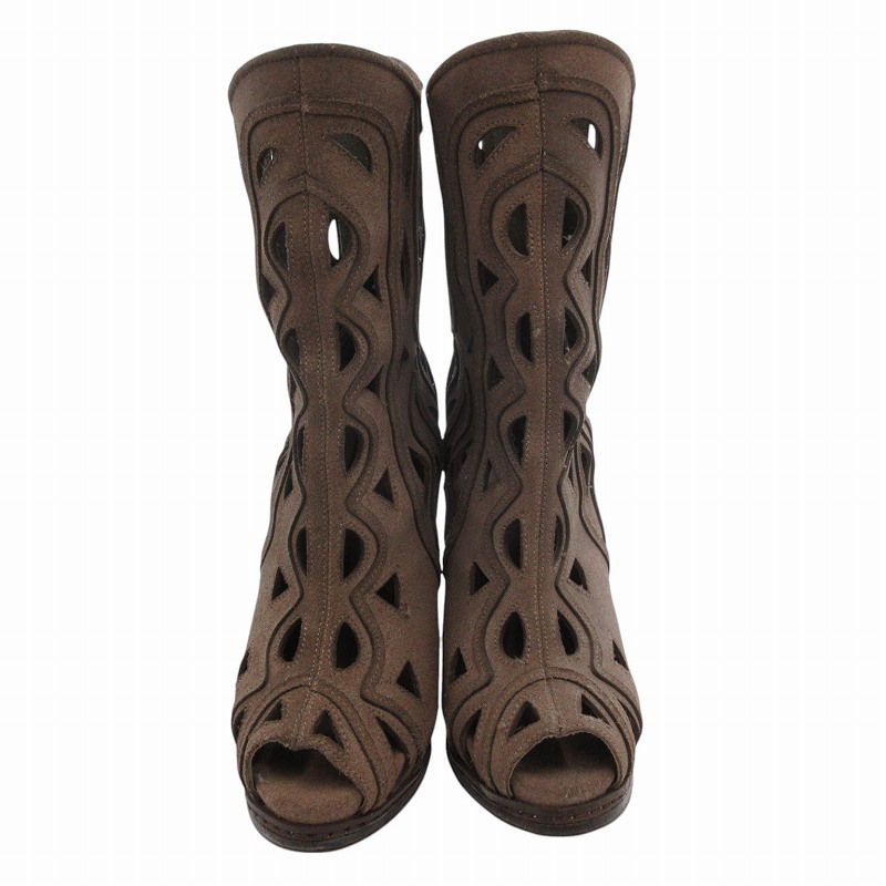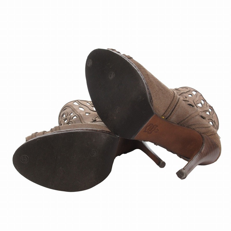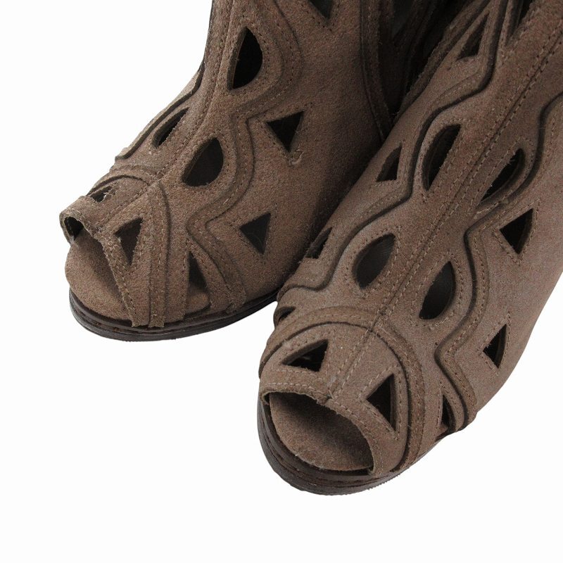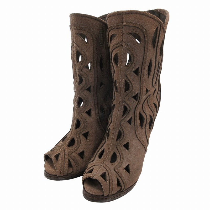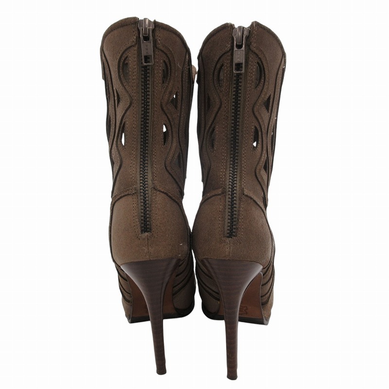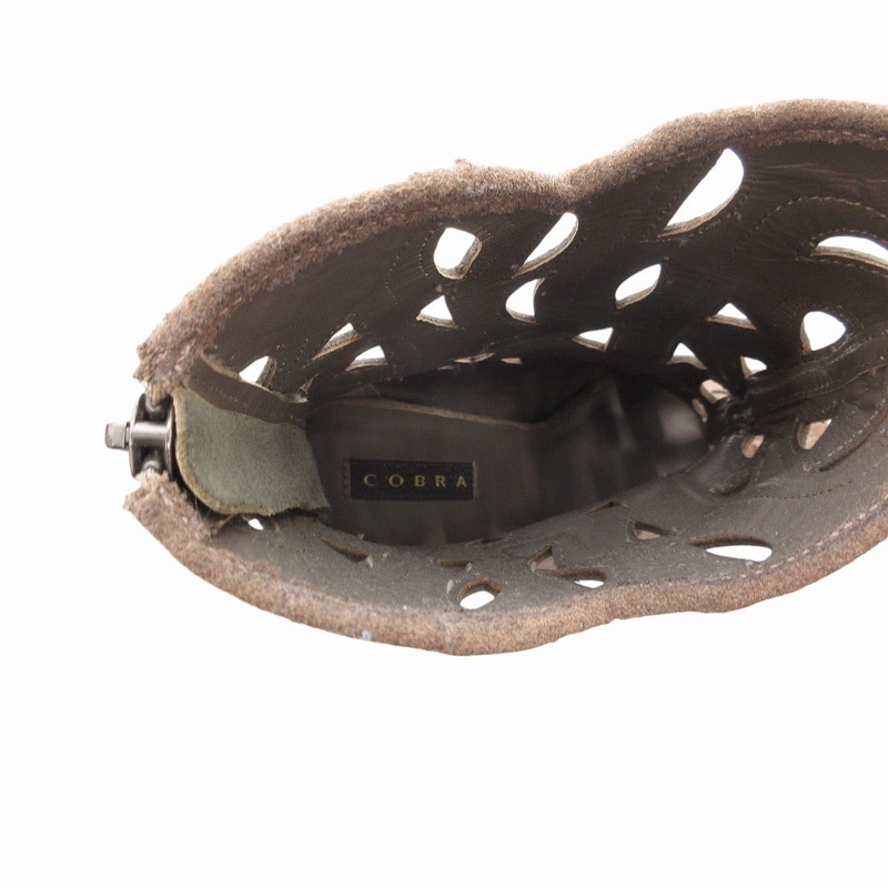 コブラ COBRA ミドルブーツ カットアウト スエード レザー バックジップ ヒール 37 茶 ブラウン /FF レディース