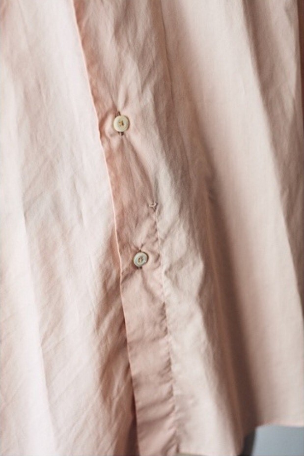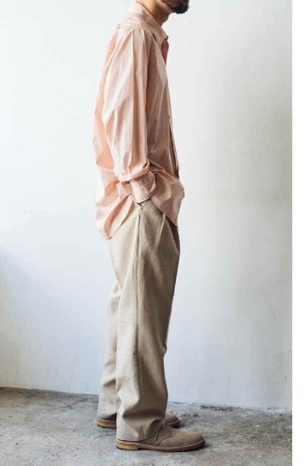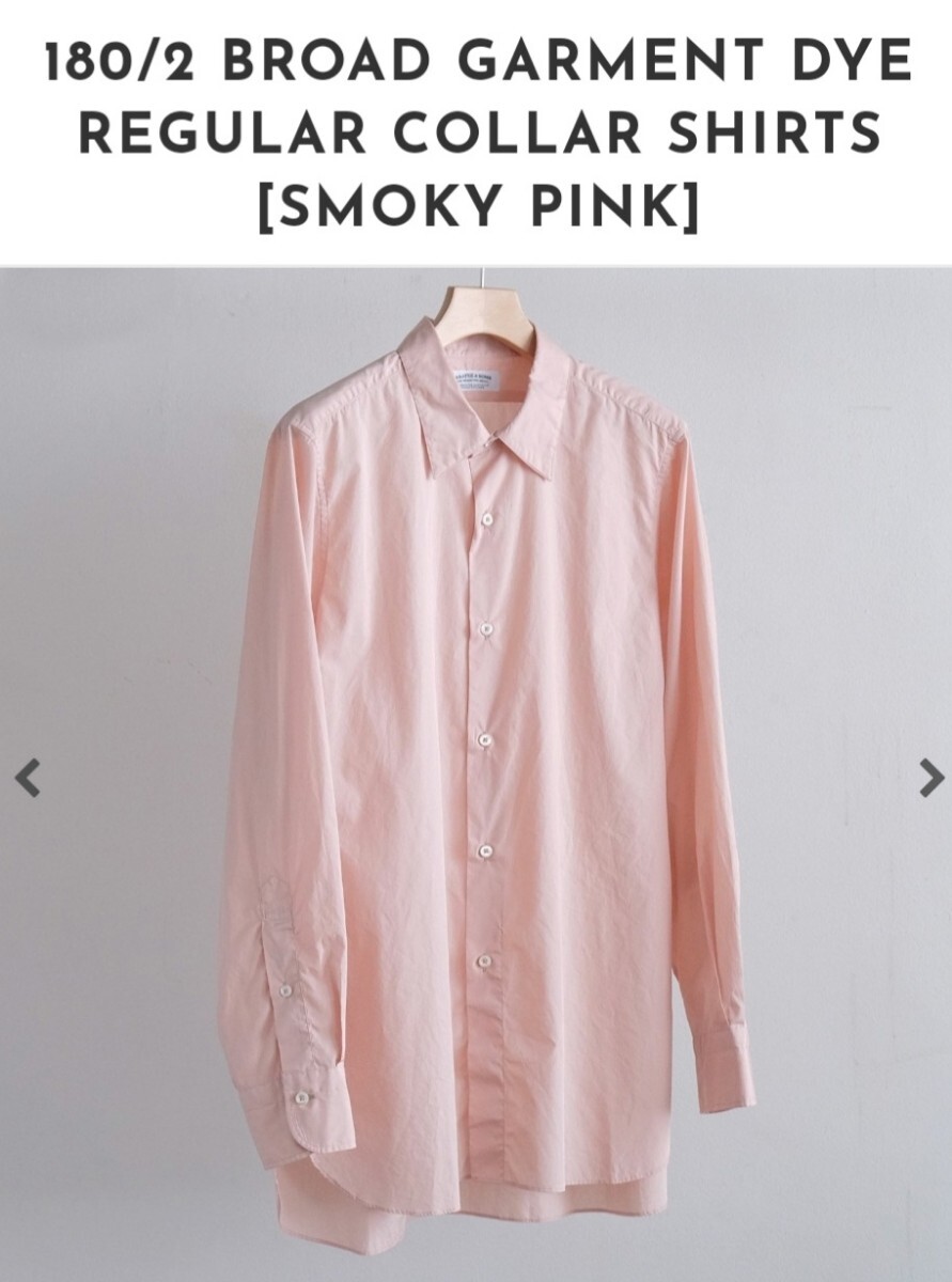 製品染めのスモーキ-ピンクカラーが目を引くシャツ