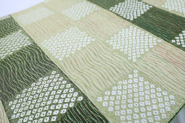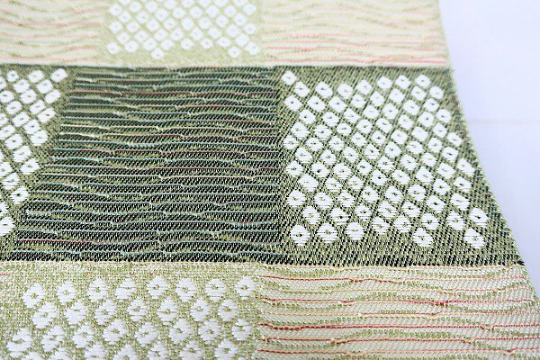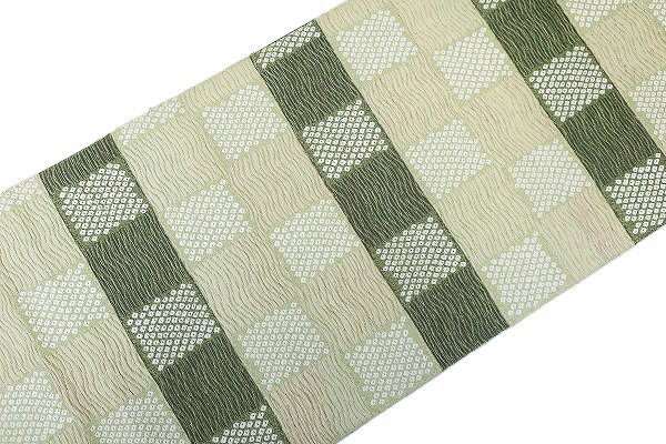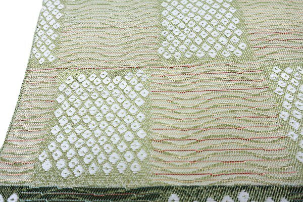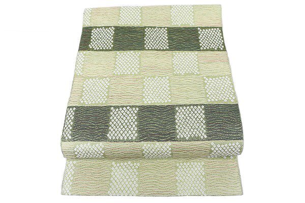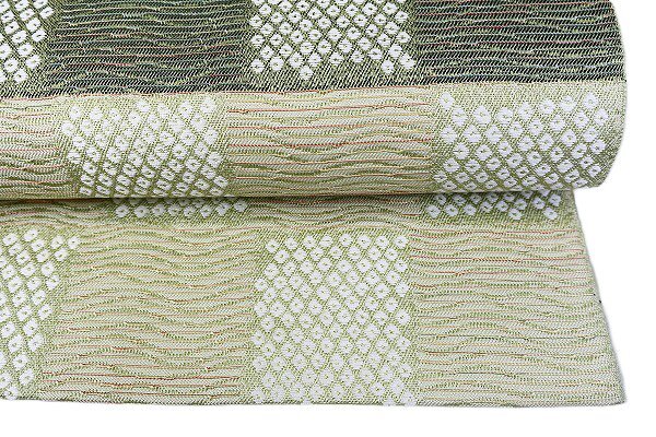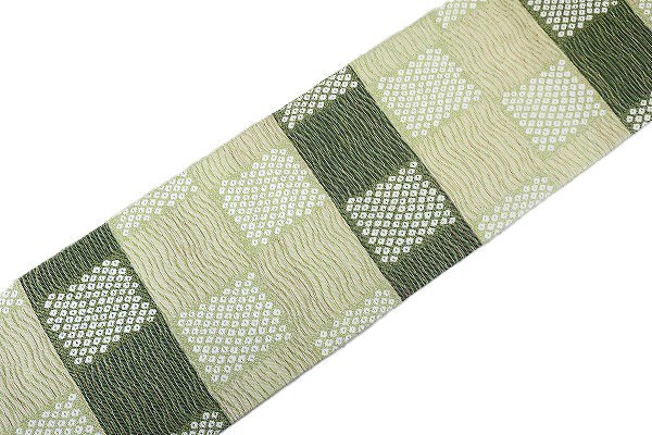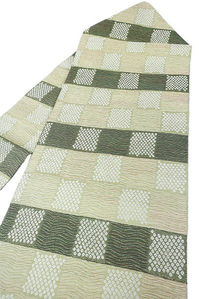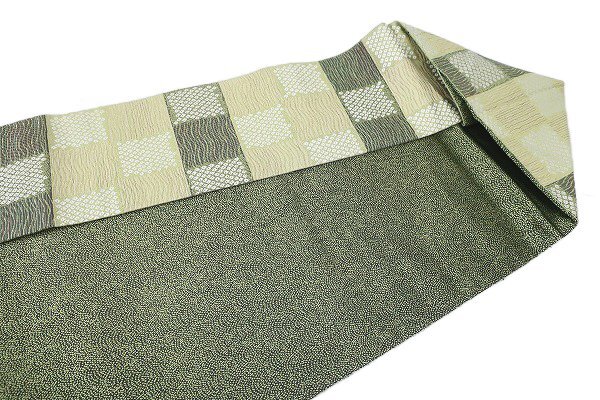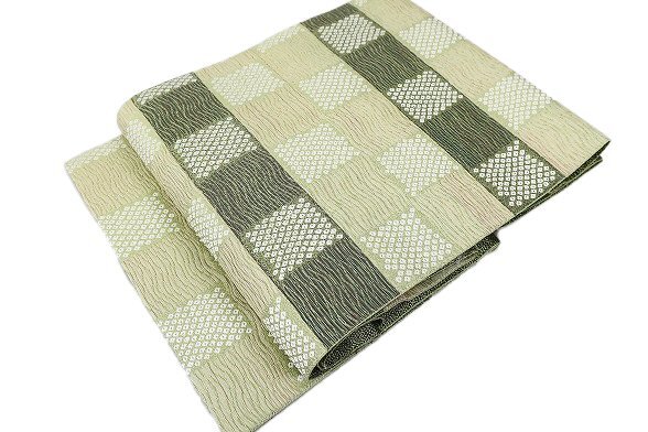 | 【送料無料】未使用品 名古屋帯 薄緑 市松 鹿の子 長さ3m77cm お洒落 カジュアル 正絹 仕立て上がり m-7189 |