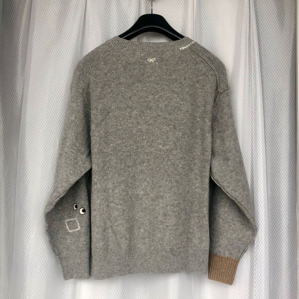 ■ふんわりとしてやわらかく、暖かな上質ウール100%。■ANYA HINDMARCHの代表的なブランドアイコンでもある、目をモチーフにした刺繍を左腕に入れたデザイン。■身頃脇や袖下、肩、袖ぐりの縫い代をわざと表側に出したり、襟ぐりには手作り感のあるステッチを入れたり、クラフト感満載の仕上がり。