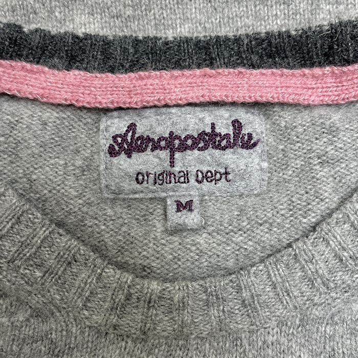| 商品タイトル | エアロポステール AEROPOSTALE ニット セーター 無地 ラグランスリーブ 長袖 丸首 プルオーバー ウール100% M ヘザーグレー レディース |