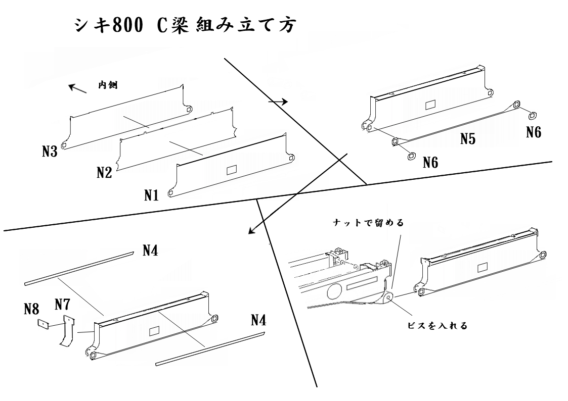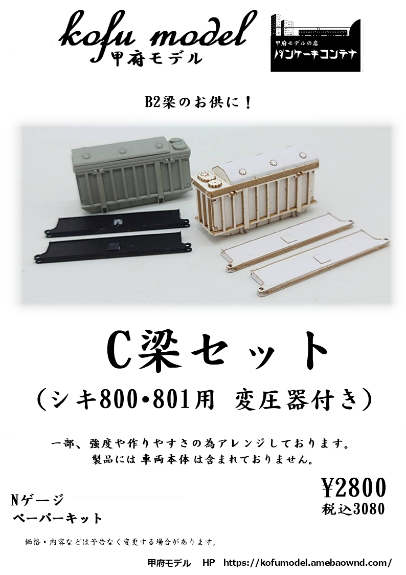 NゲージのC梁セット(シキ800・801用 変圧器付き)のレーザー切り抜き済みペーパーキットです。