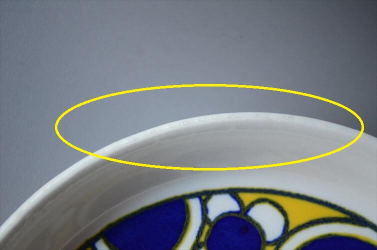 ソーサー/カトラリー擦れ、点状の突起、縁に複数の気泡(ざらざら)が見られる箇所がございます。
