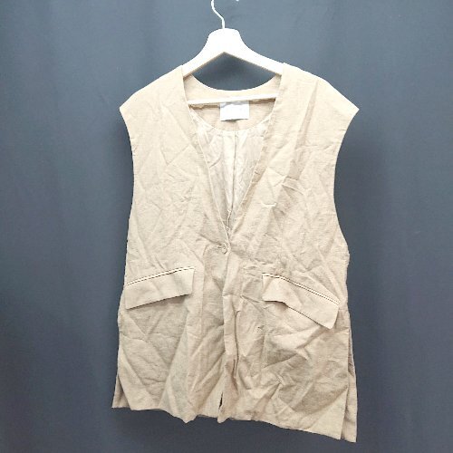 ◇ Simplicite シンプリシテェ Vネック 裏地 ボタン 薄手 シンプル ノースリーブ ベスト 表記なし ベージュ レディース E