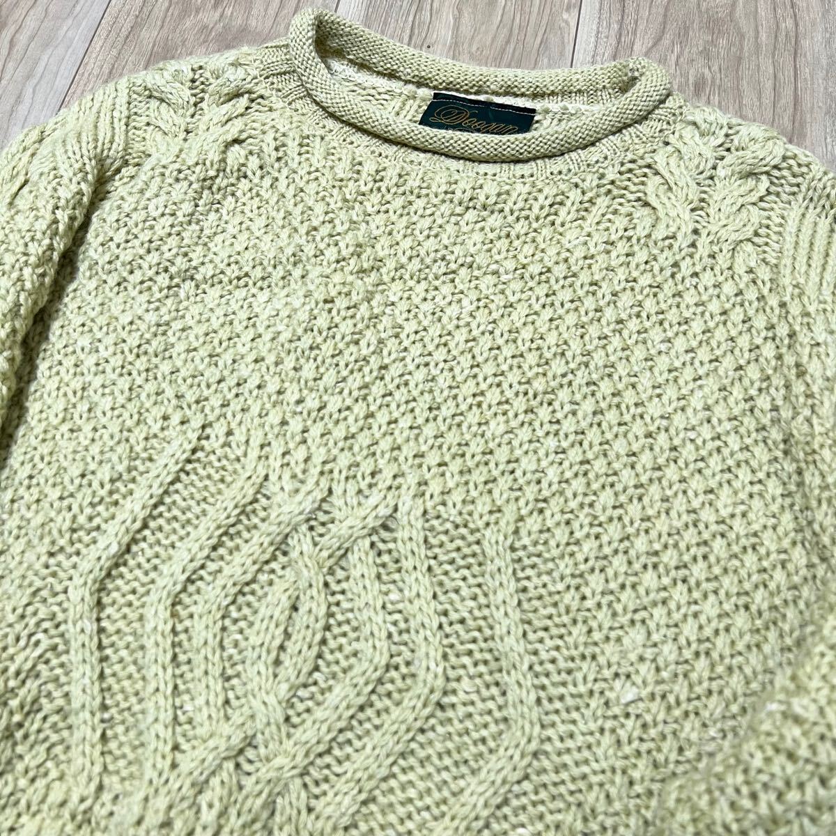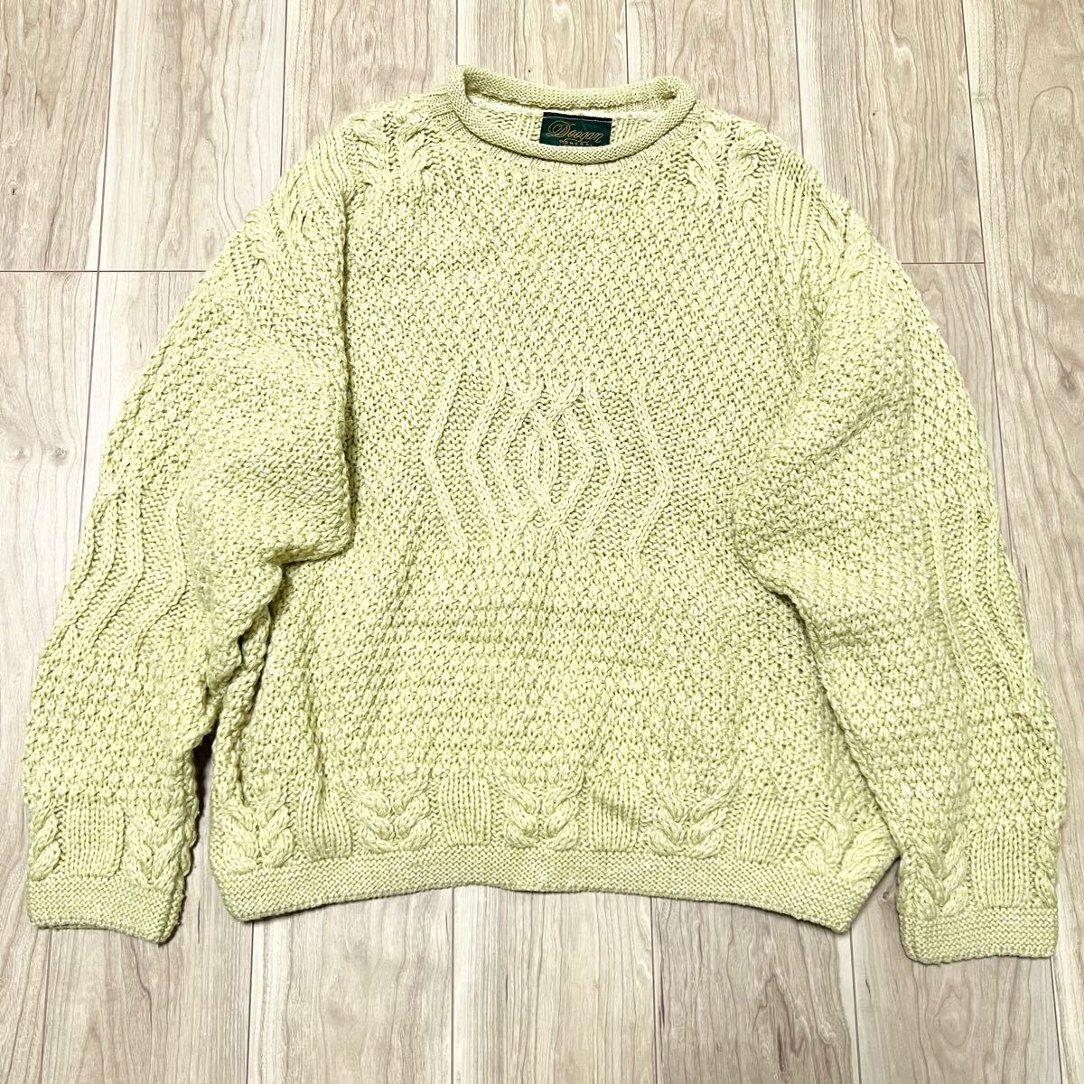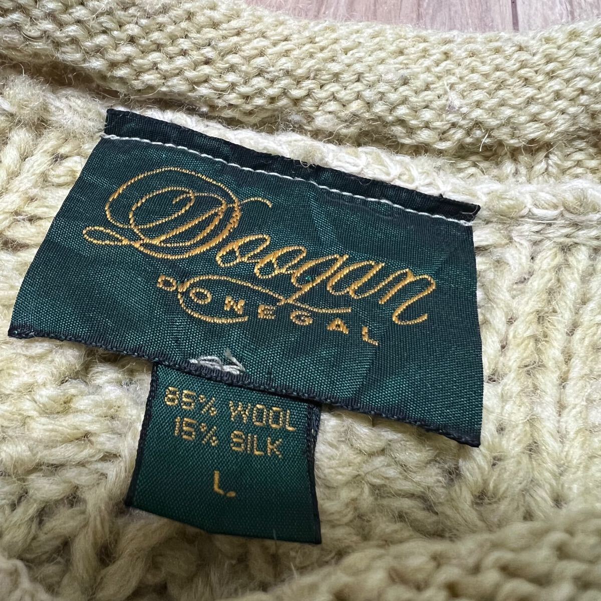 ★アイルランド★80s ビンテージ Doogan DONEGAL 長袖 フィッシャーマンニット アランセーター メンズ ヴィンテージ サイズL シルク R-6865