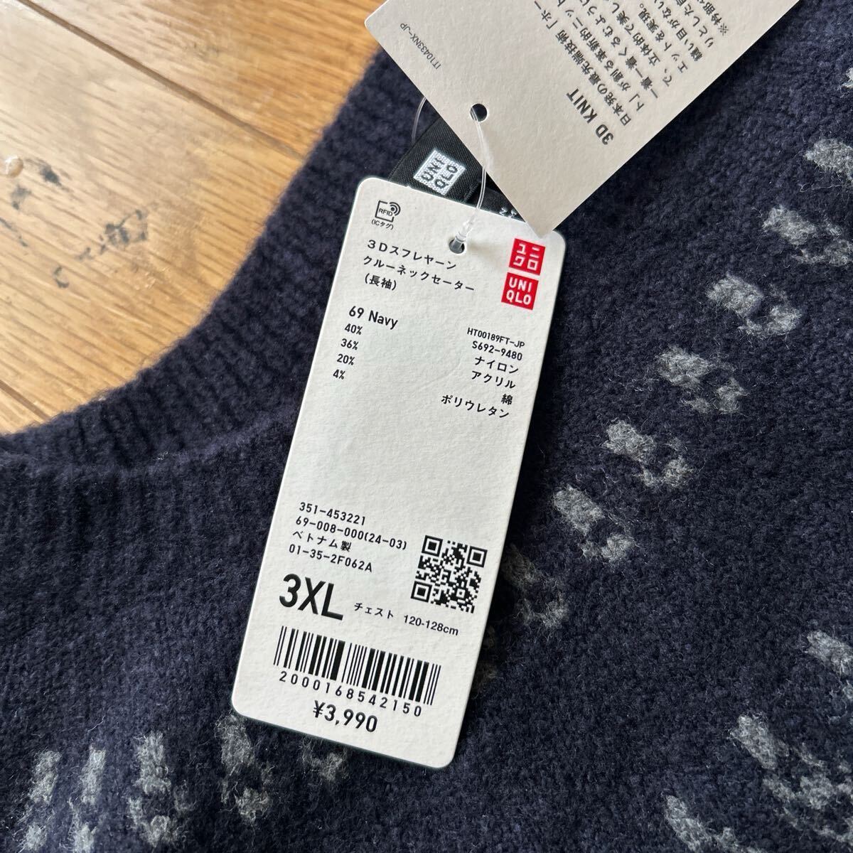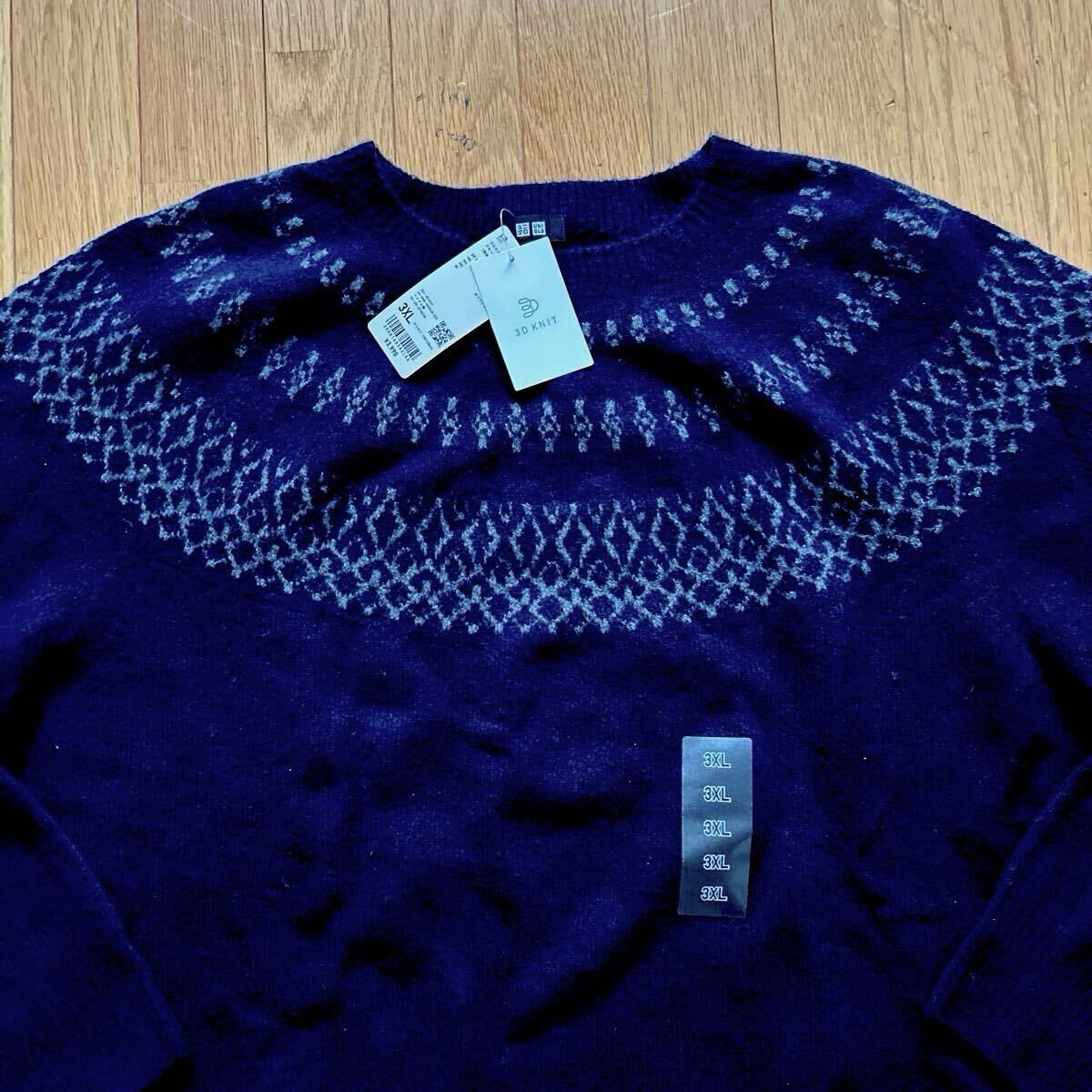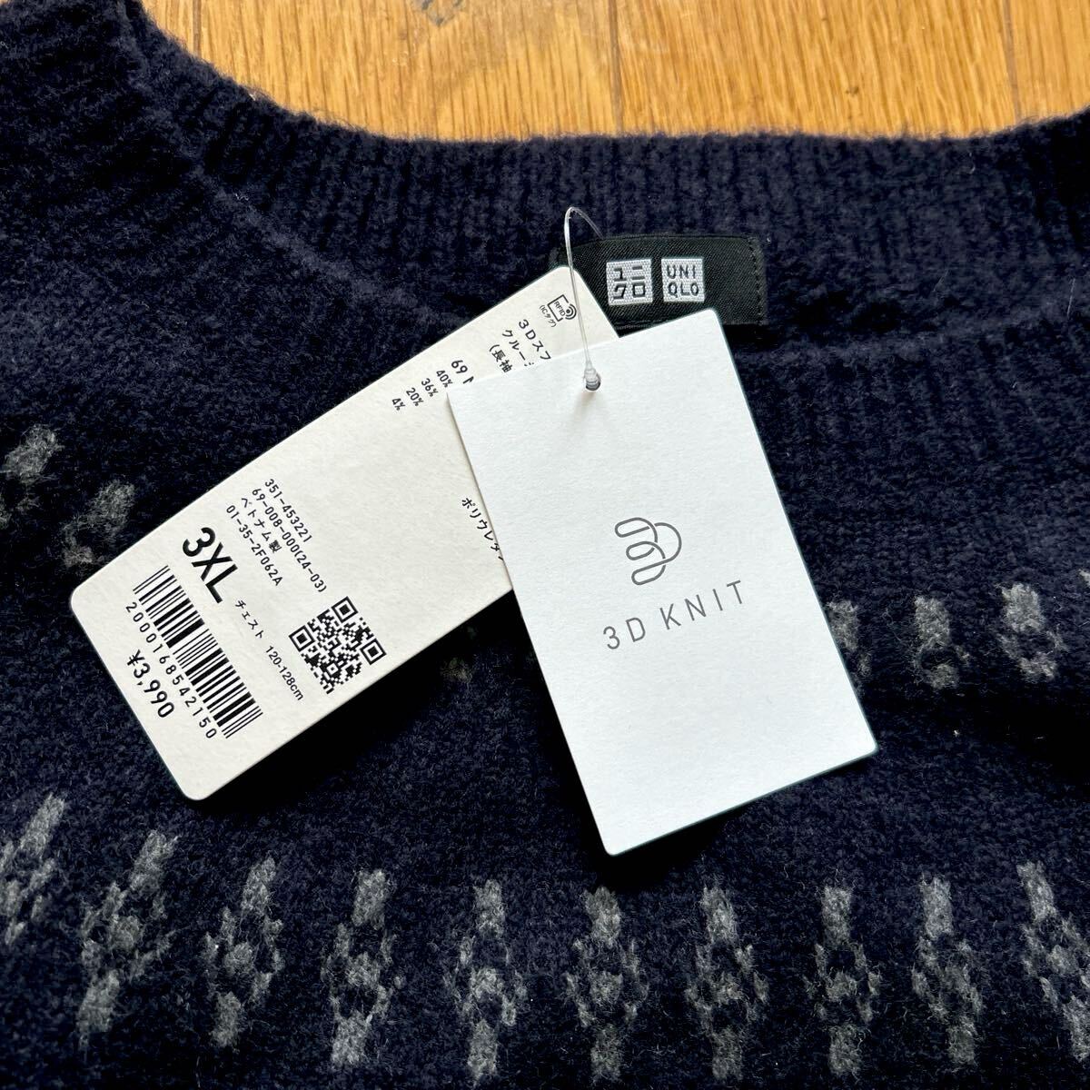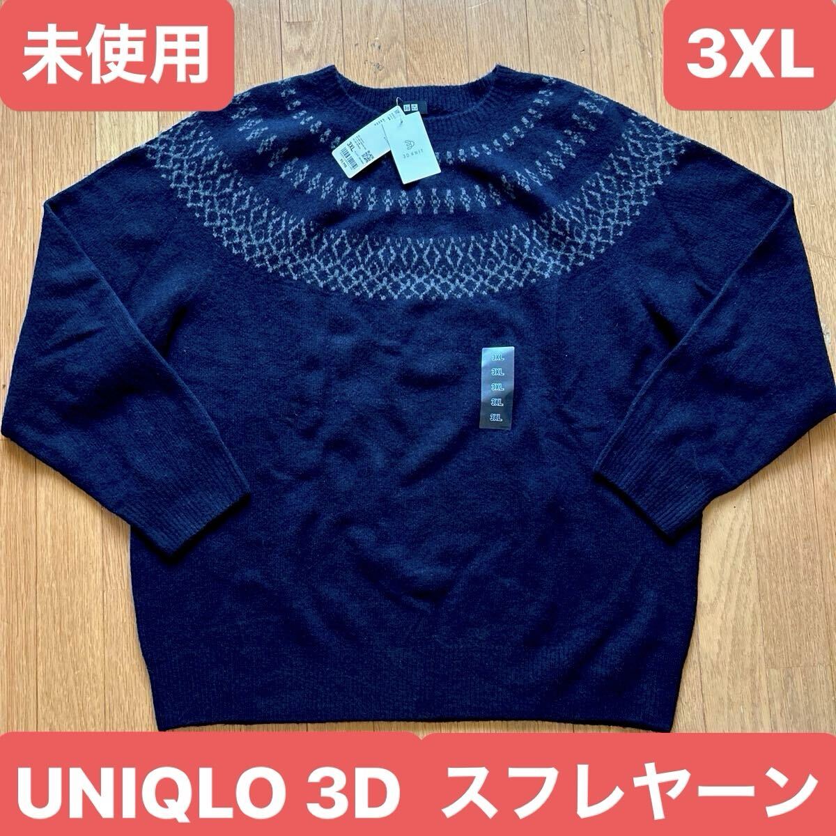 | 未使用 ユニクロ UNIQLO 3D スフレヤーン クルーネックセーター ネイビー サイズ3XL | |||