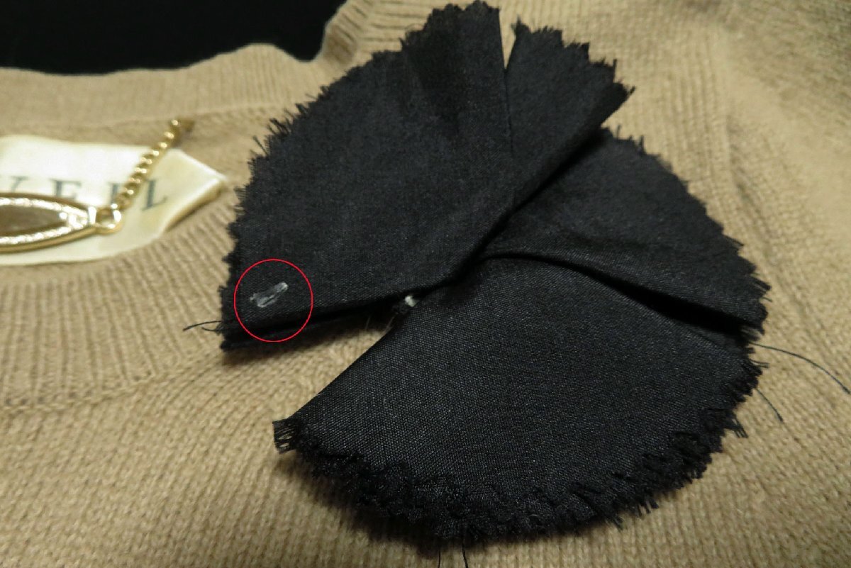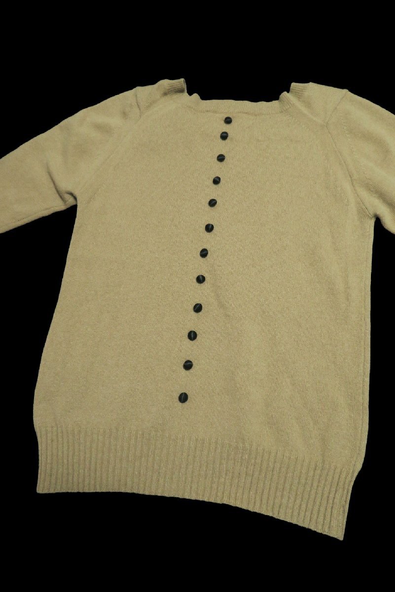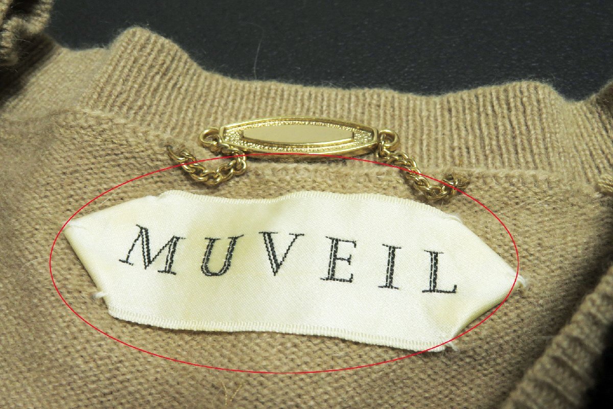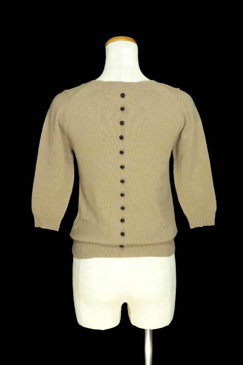 ☆美品☆MUVEILミュベール/ブローチ付ウールアンゴラ5分袖ニットプルオーバー:ベージュnk896