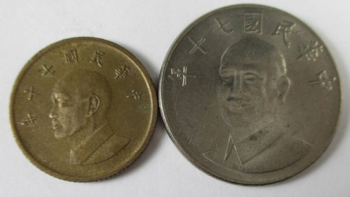 | 中華民国 台湾 70年 10圓1枚 1圓1枚硬貨 コイン 計2枚 | |||