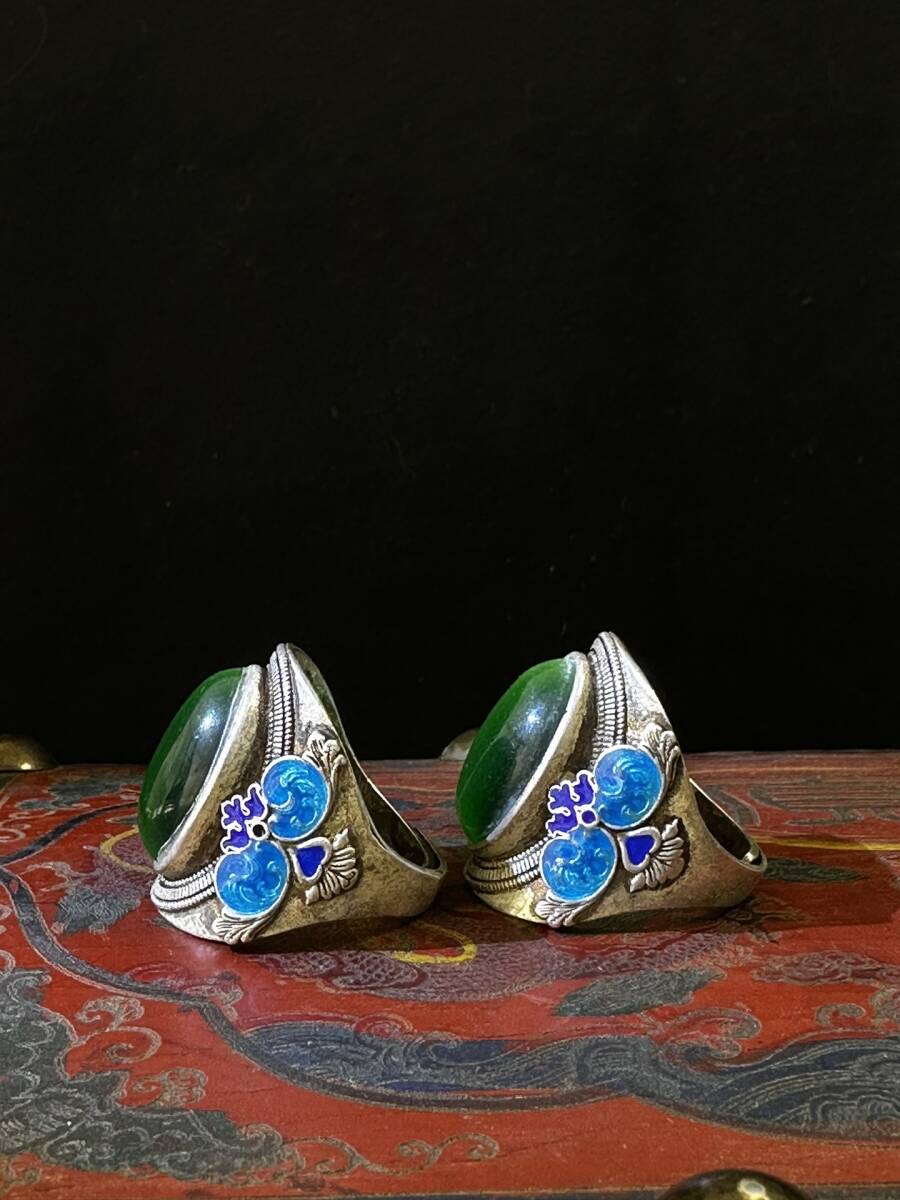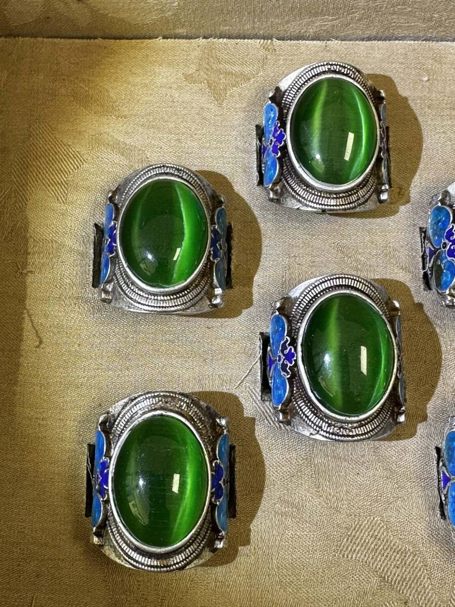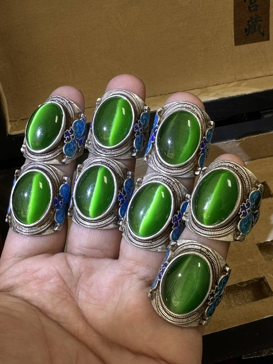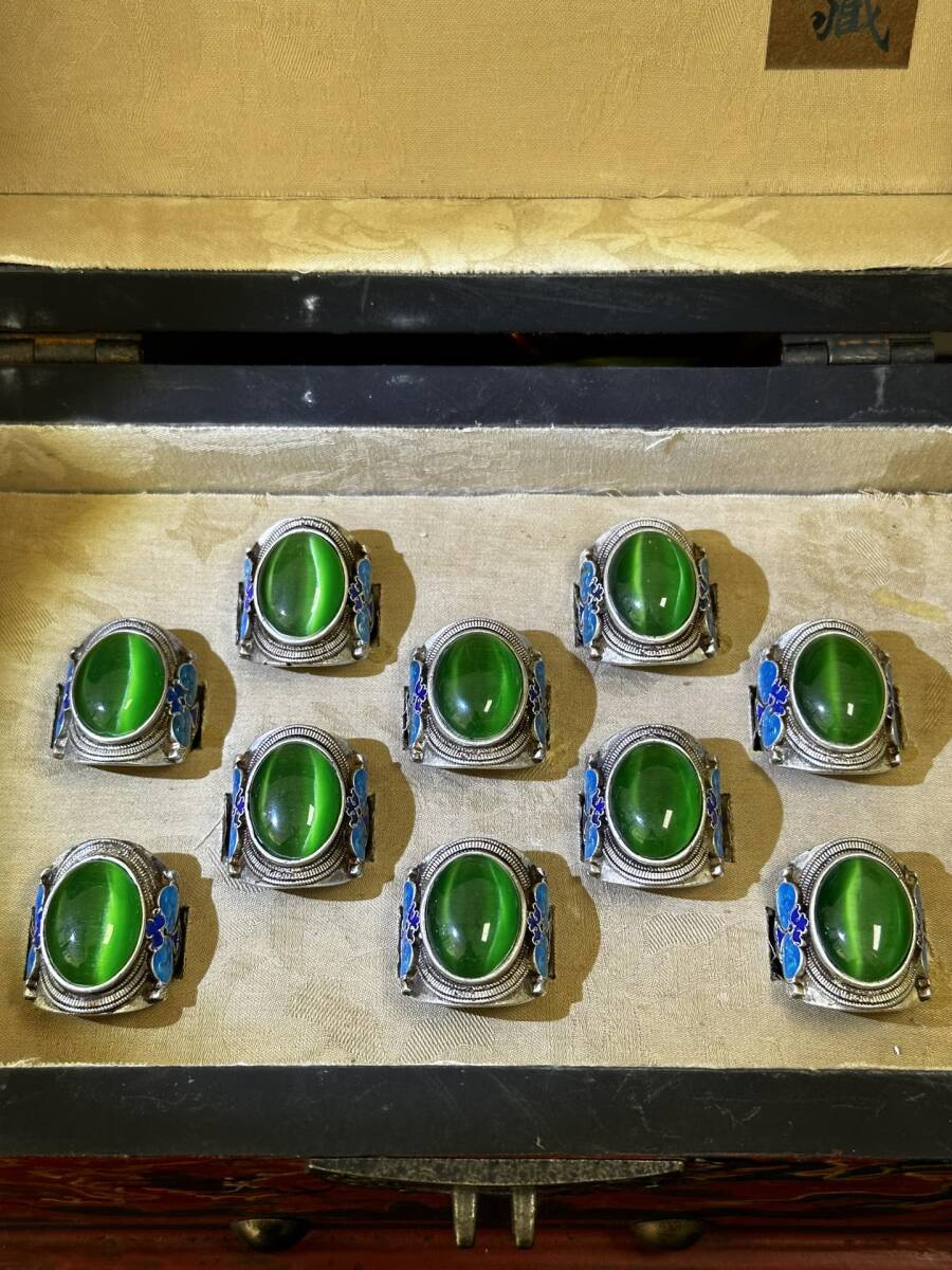 『清・宮廷御製・古綠猫眼石彫・戒指・指環・箱付』極細工・東洋彫刻・骨董品・古賞物・中国古玩・中国古美術