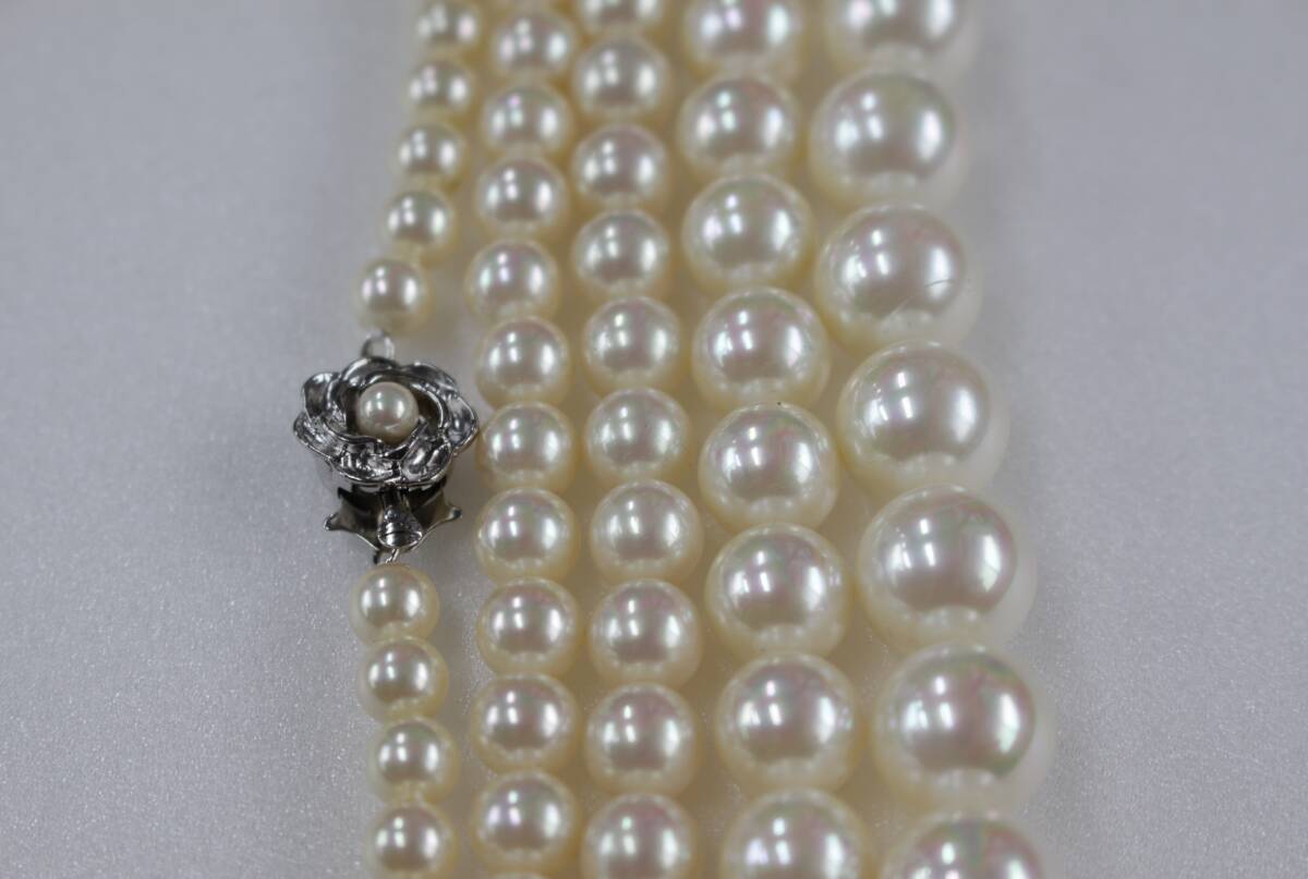 内側が約40センチ・外側が約50センチとなります。(パールのサイズ6ミリ)