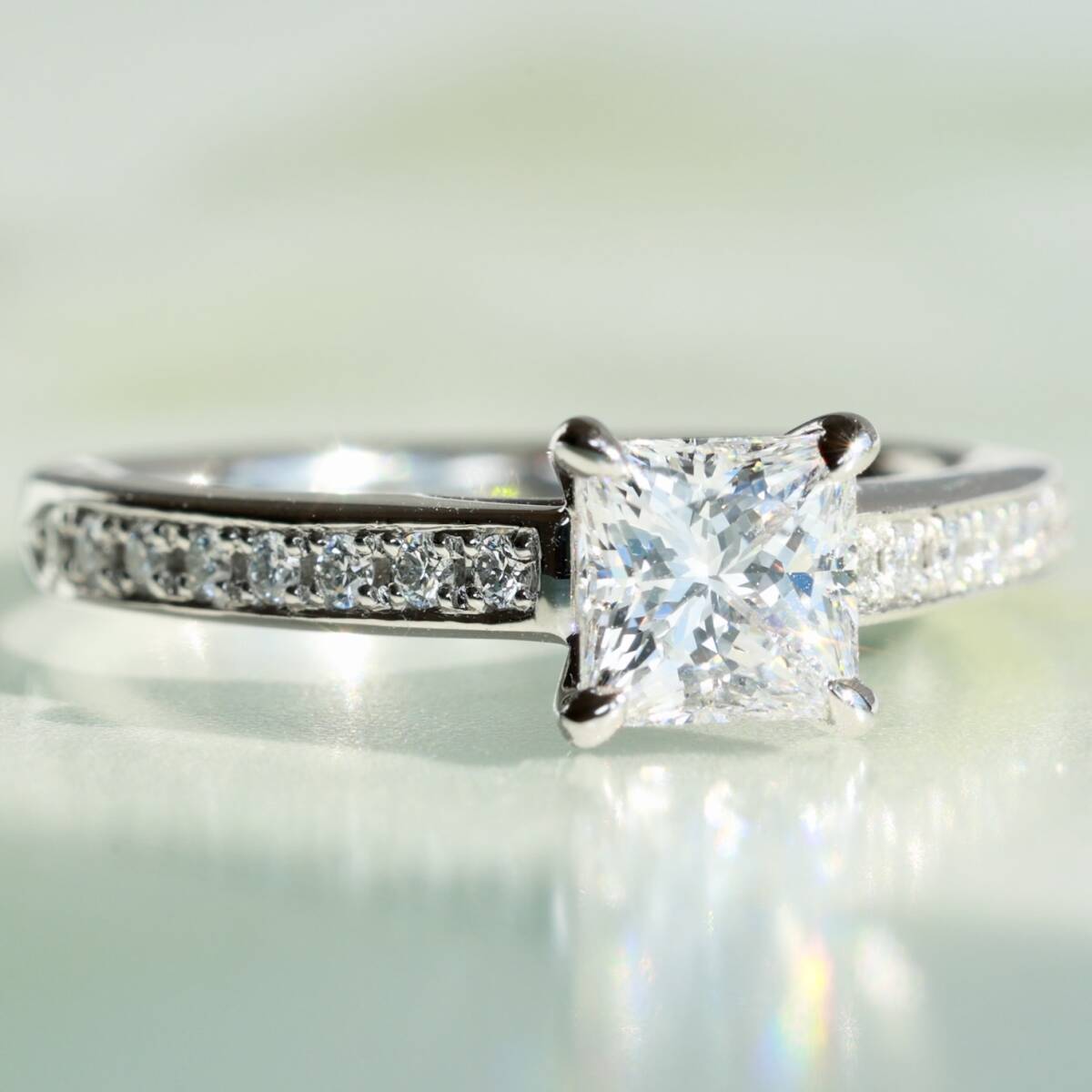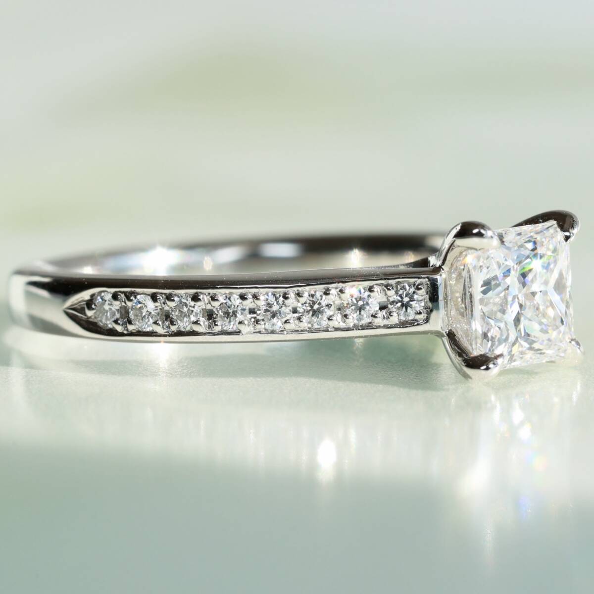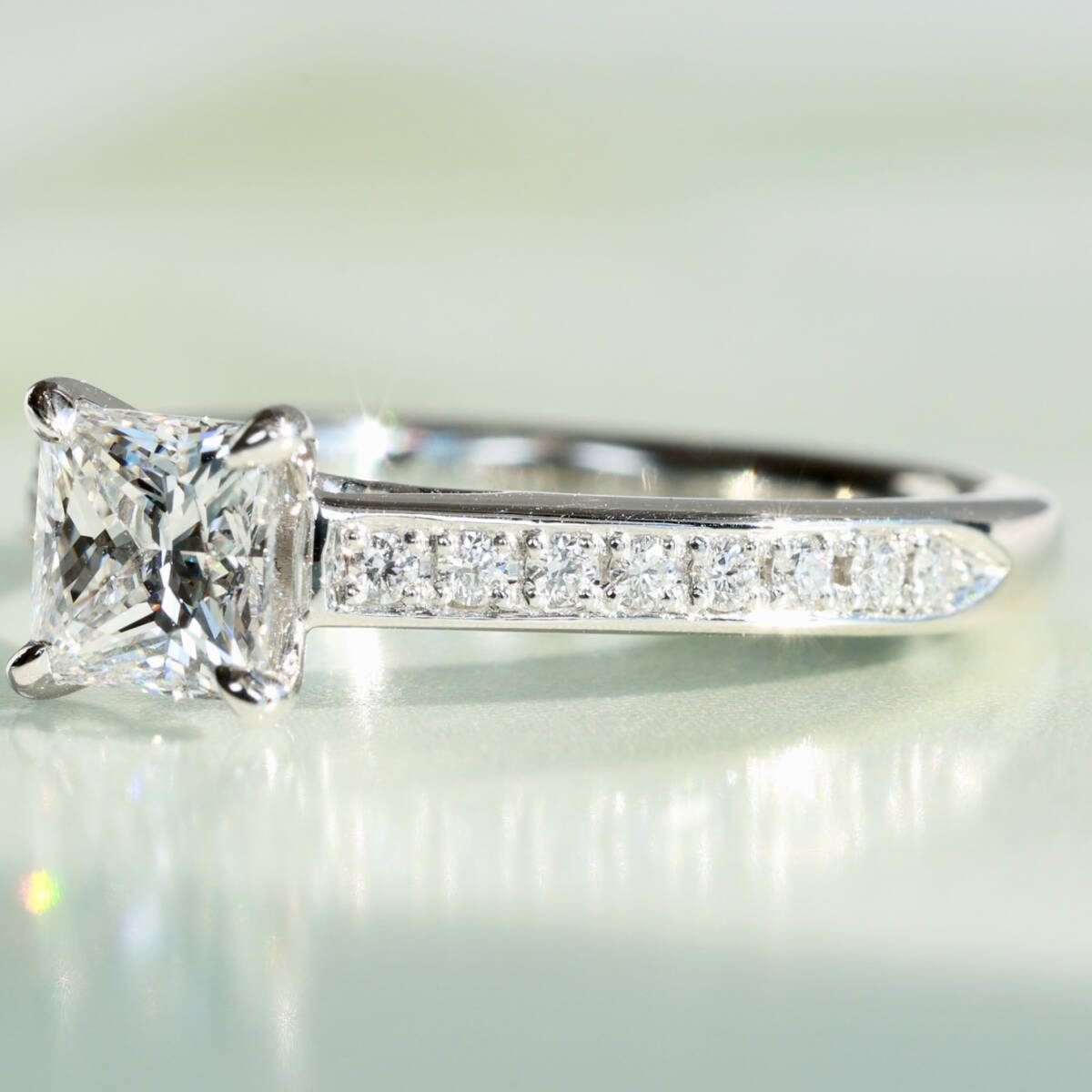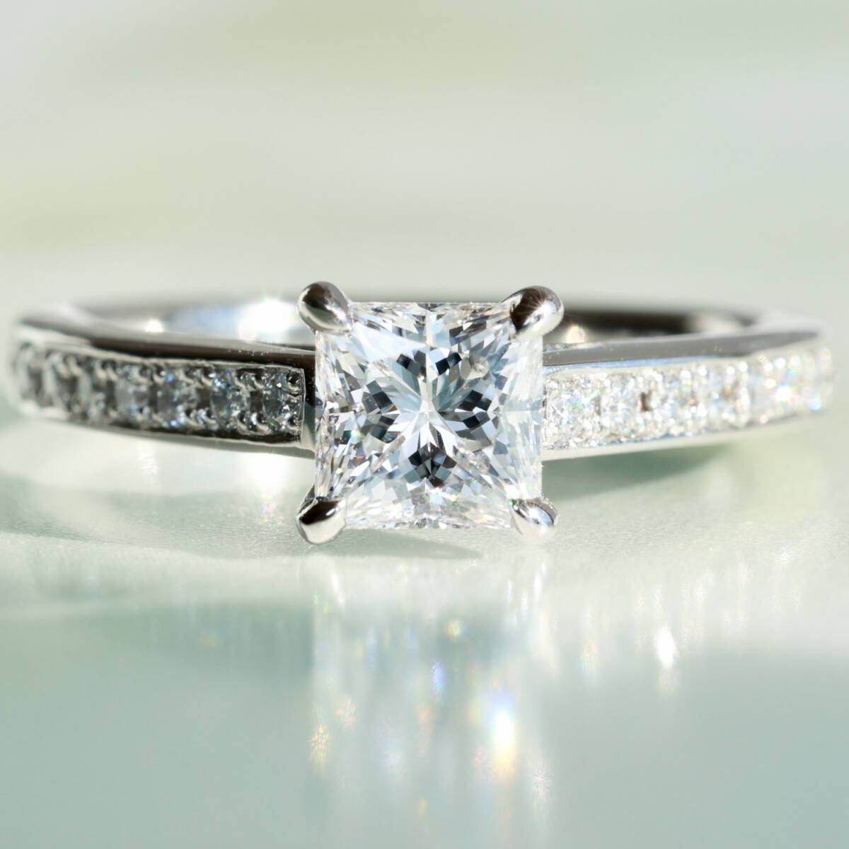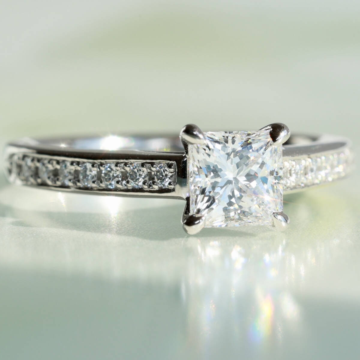 高品質なプリンセスカットのダイヤモンドは1石で0.70ctと十分な大きさと、DカラーとVS1クラスと高品質で輝きの美しいお品です。