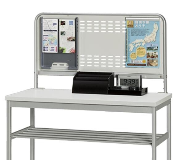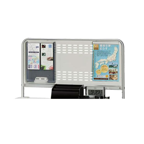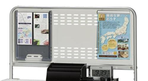 KDS用記載台用掲示ボードです。表示部はスチール製なのでマグネットが使えます。付属のパンフレットケースとペーパーロック(W210mm)で販促チラシや注意事項をマグネットがなくても表示することができます。 |