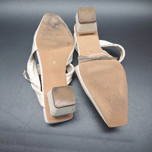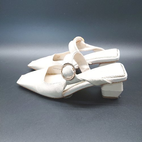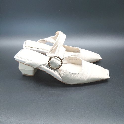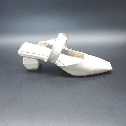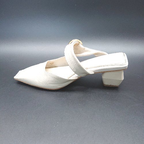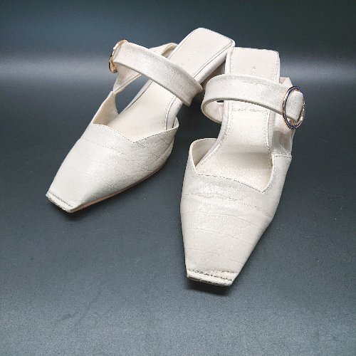 ◇ RANDA ランダ クロコダイル柄 スクエアトゥ デート ヌーディー感 ミュール サイズS オフホワイト レディース E