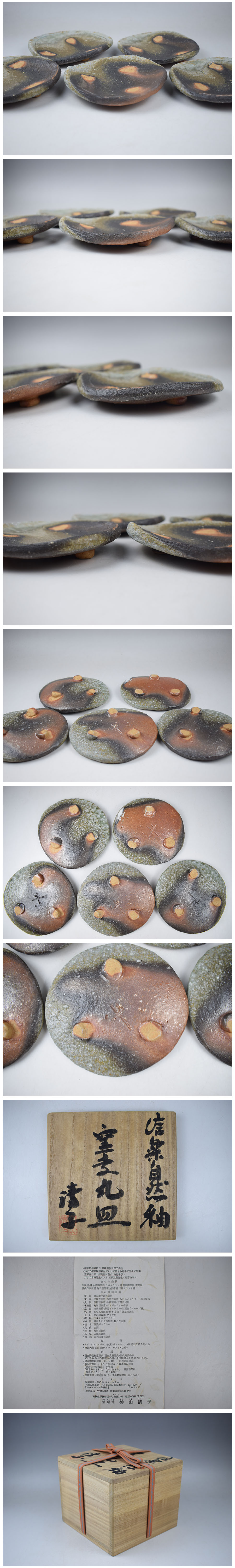 【神山清子 信楽自然釉窯変丸皿 五枚揃 共箱 真作保証 】