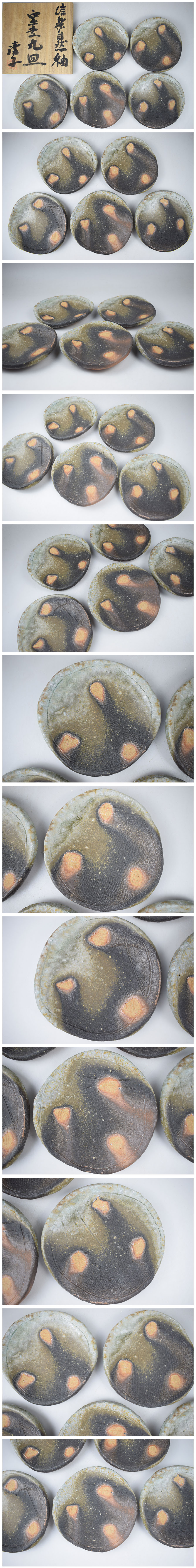 D383 神山清子 信楽自然釉窯変丸皿 五枚揃 共箱 真作保証
