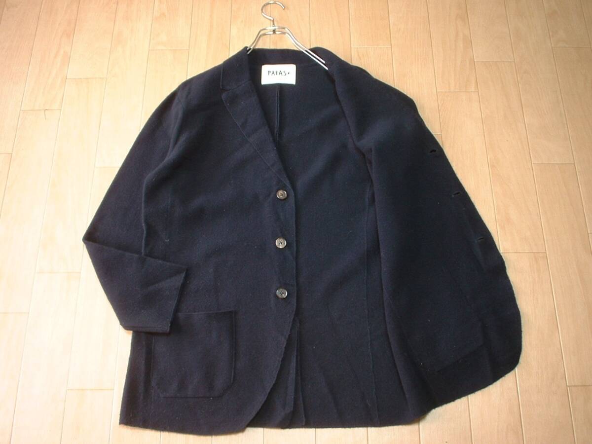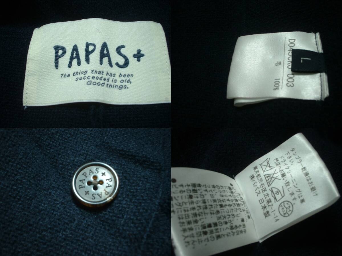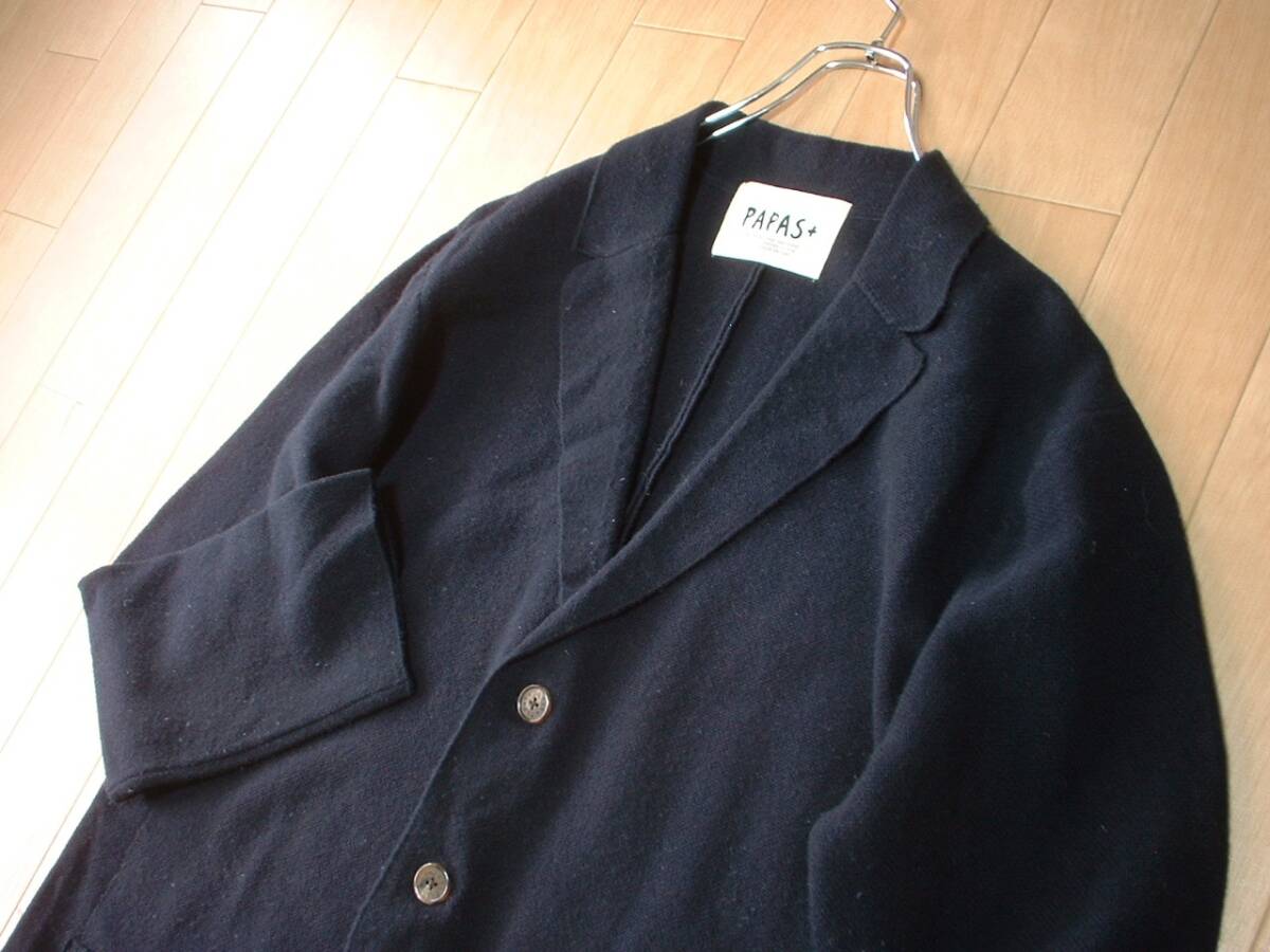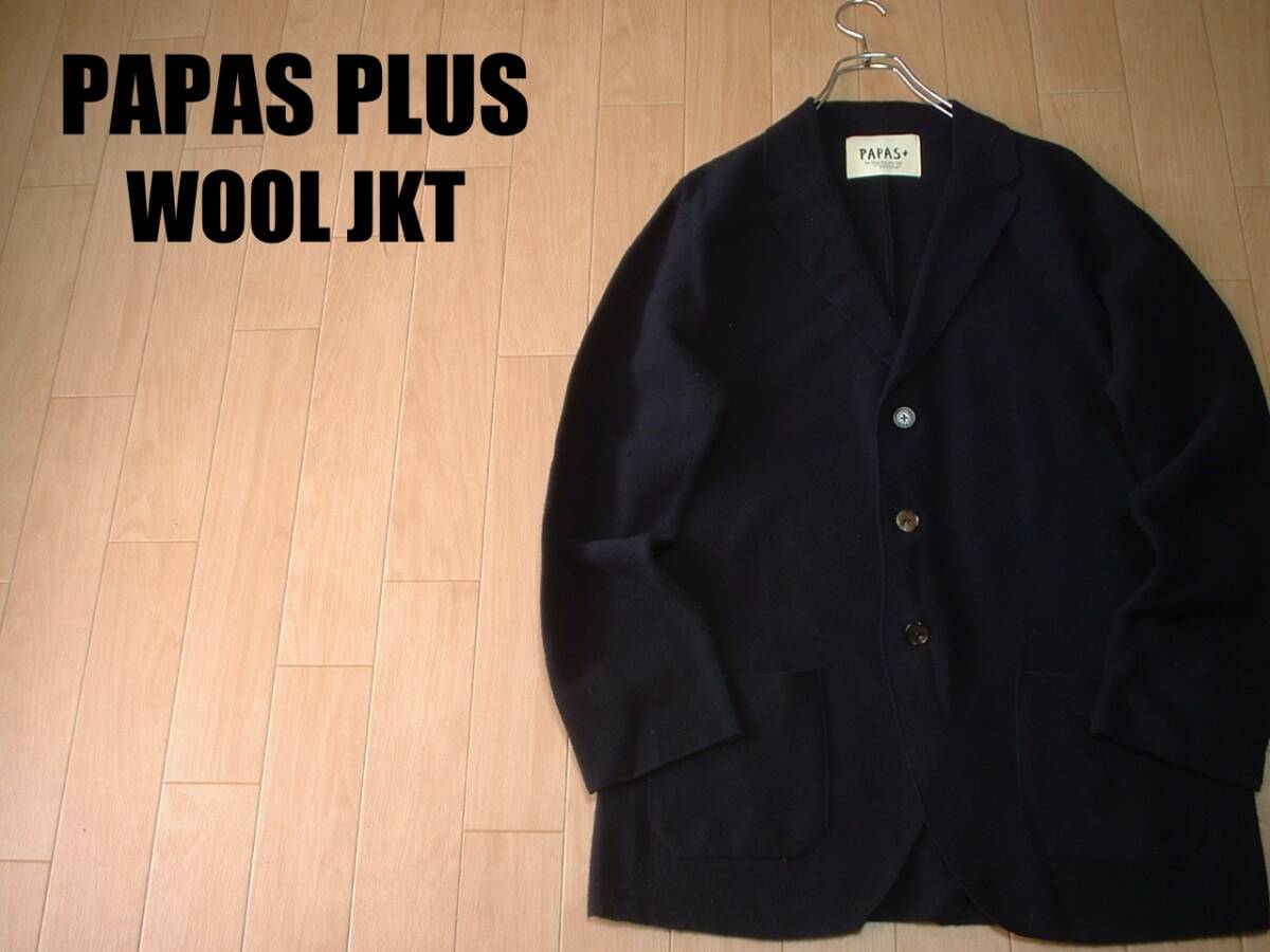 売り切りPapas PLUS柔らかウールテーラードジャケット美品Lカバーオール濃紺ネイビーブレザー正規パパスプラスMADE IN JAPAN定価9万円