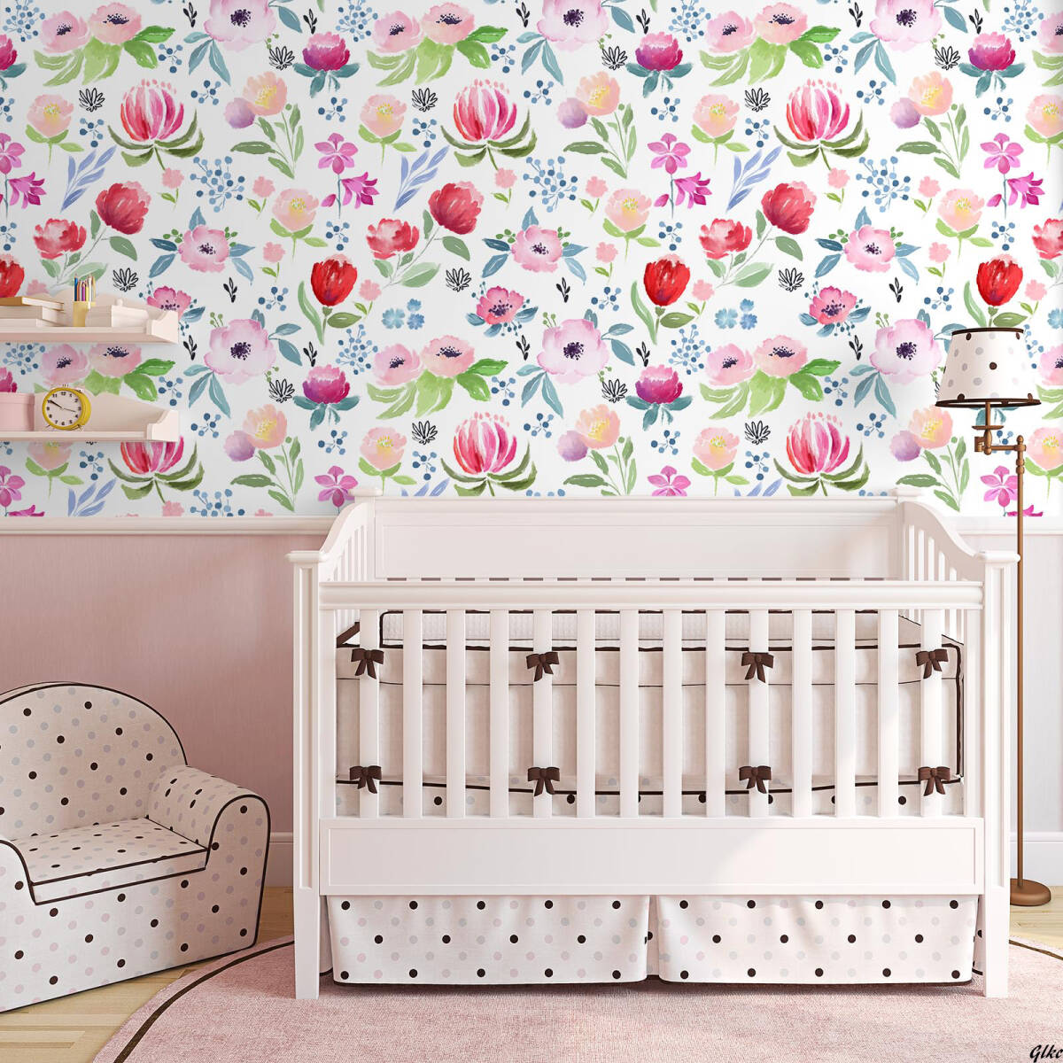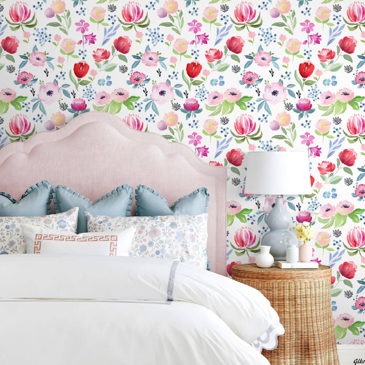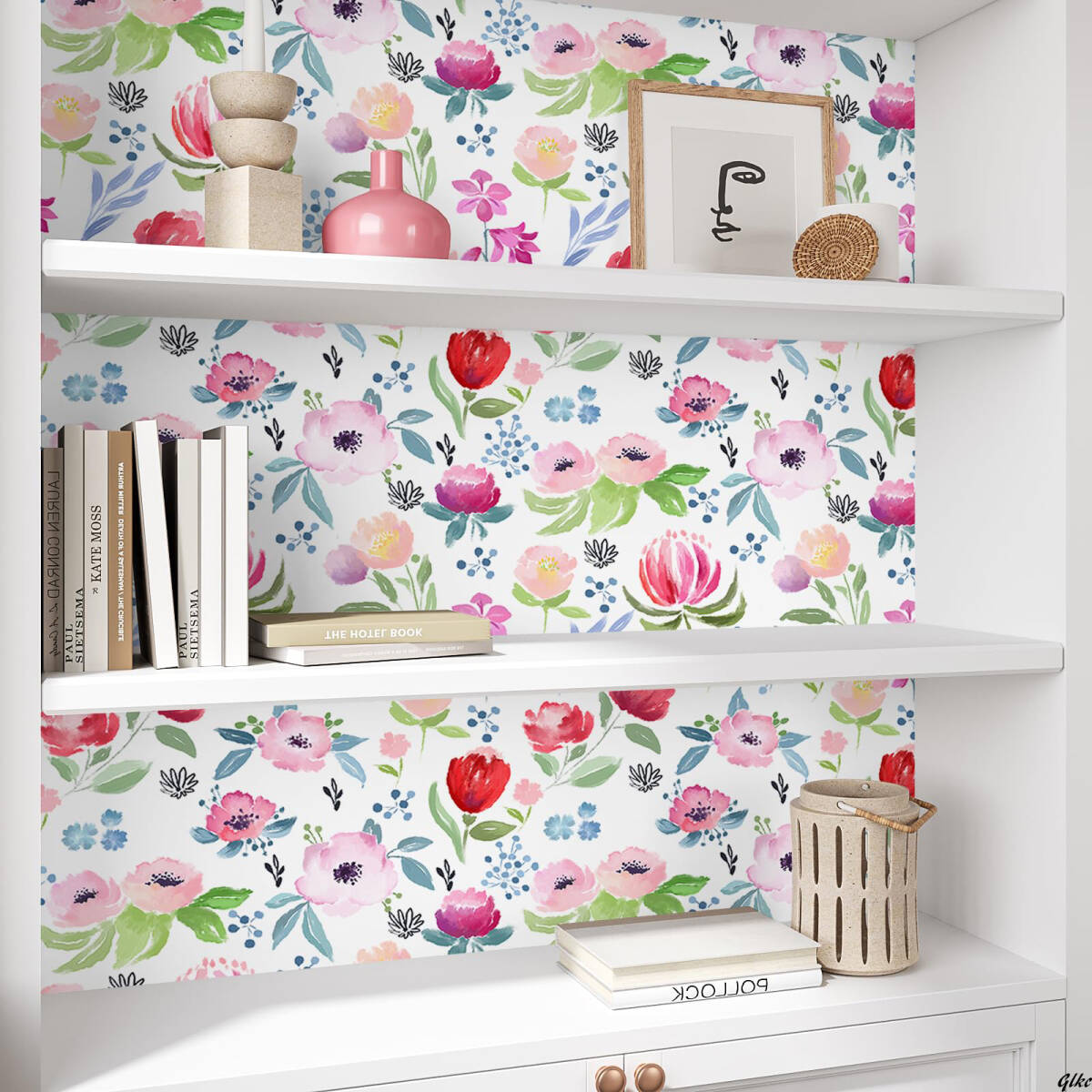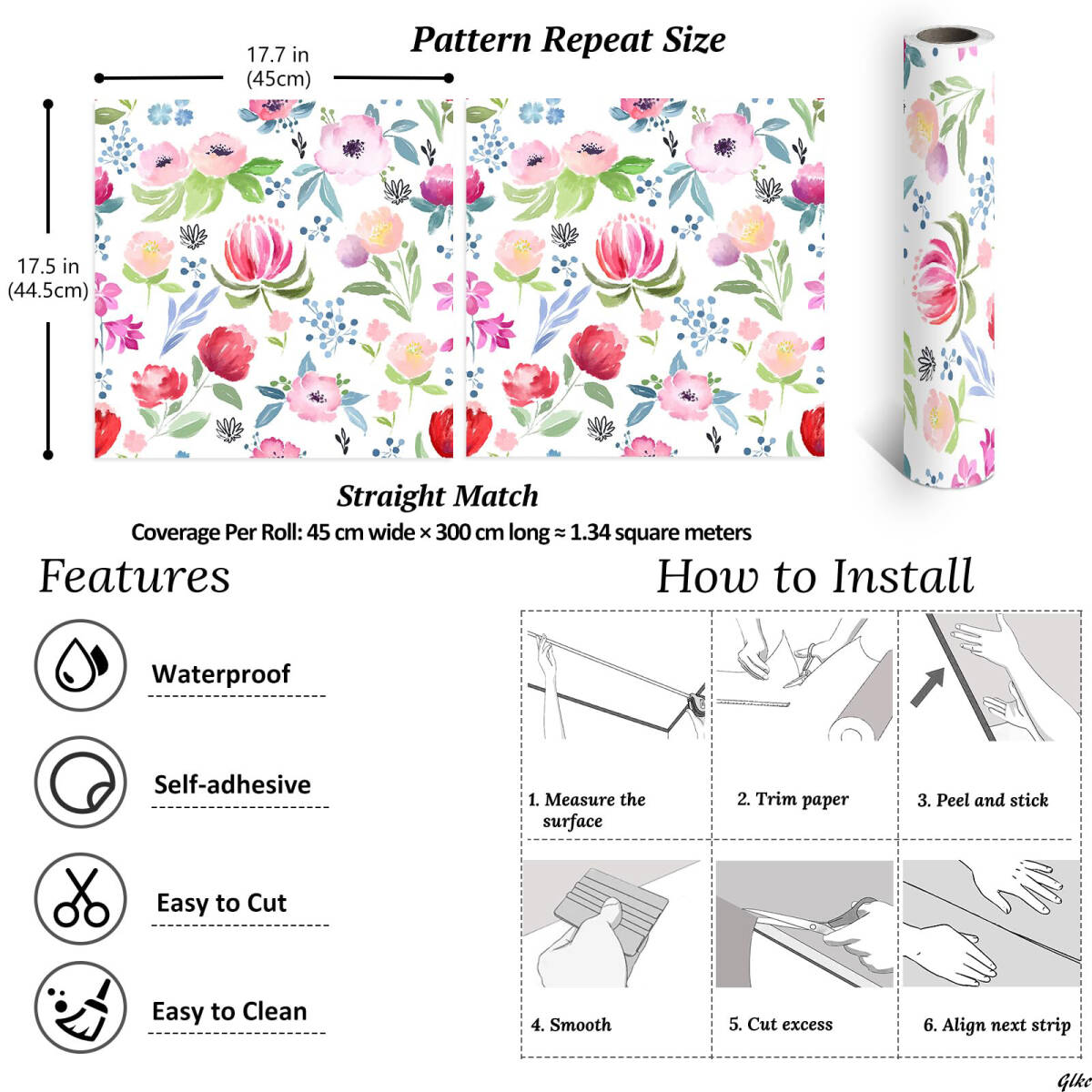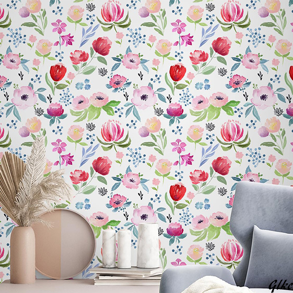 この壁紙シールは、花柄の水彩画デザインが施されており、部屋に温かみを与えるデザインが特徴です。