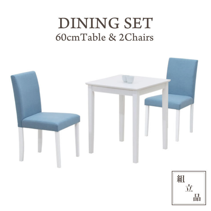 ダイニングテーブルセット3点 幅60cm pt60-3-rusi342bl ホワイト 白 ブルー 2人用 コンパクト チェア 食卓 リビング 5s-2k-159/160 hg