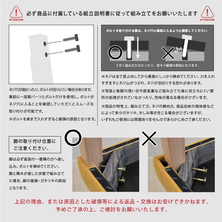 組み立て家具は組み立て前に必ず商品の確認をお願い致します。