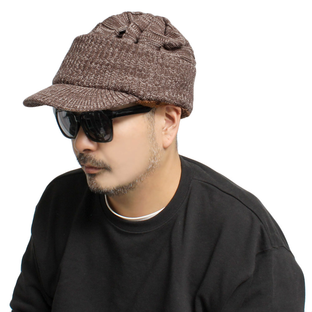 | 商品名 | 【新品】 F ブラウンベージュ つば付き ニットキャップ メンズ ニットキャスケット アクリル 裏ボア バイザー ニット帽 |