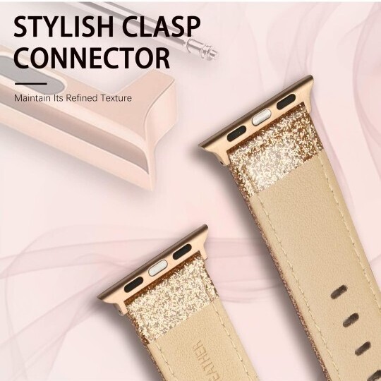 快適な滑り止め&汗吸収フィットを提供するためにデザインされたキラキラ材料で高級本革で作られて。 ステンレス鋼のコネクターはりんごの腕時計にきちんと締まり、切り、取付けることは容易です。