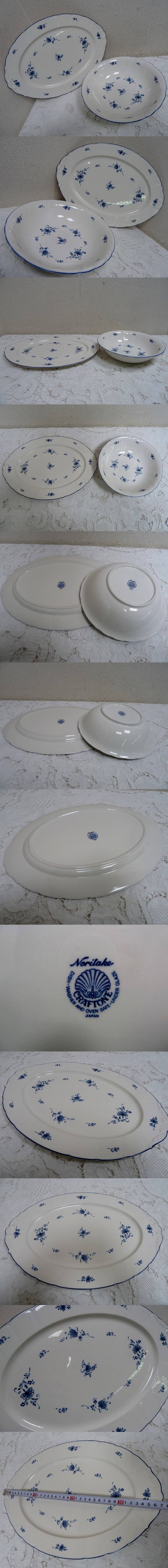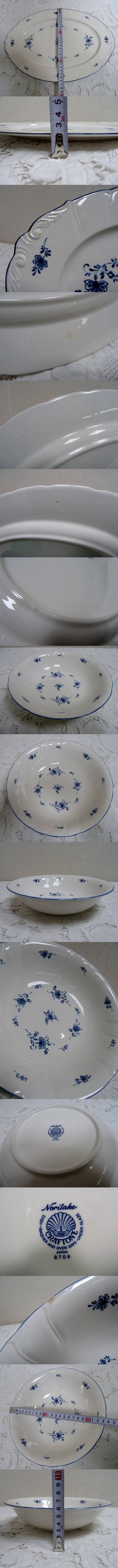 (☆BM)Noritake/CRAFTONE #8709 ノリタケ クラフトーン オーバル 大皿&ボウル 2点セット ブルー 青 小花柄 オールドノリタケ プレート