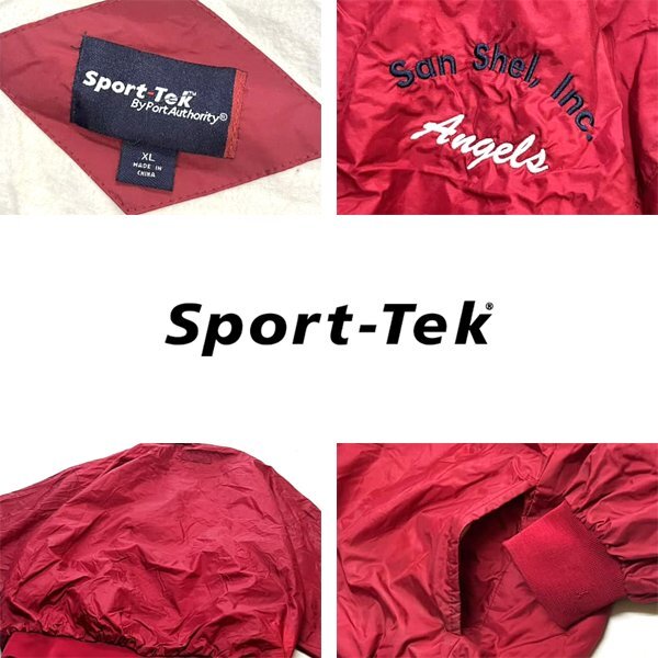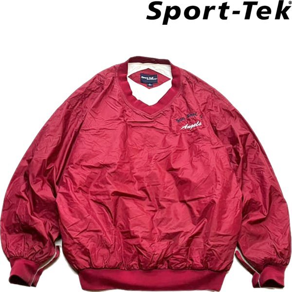 1点物◆Sport Tekプルオーバー中古ナイロンジャケット古着メンズXLレディースOKアメカジ90sストリート/スポーツアウター色エンジ赤348211