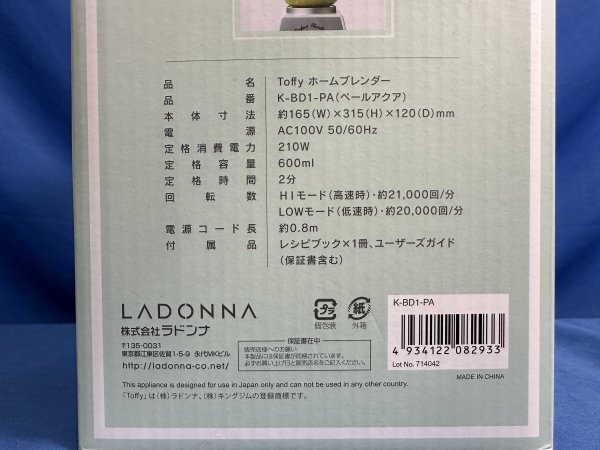 未使用 LADONNA Toffy 2024年 K-BD1-PA ホームブレンダーです。