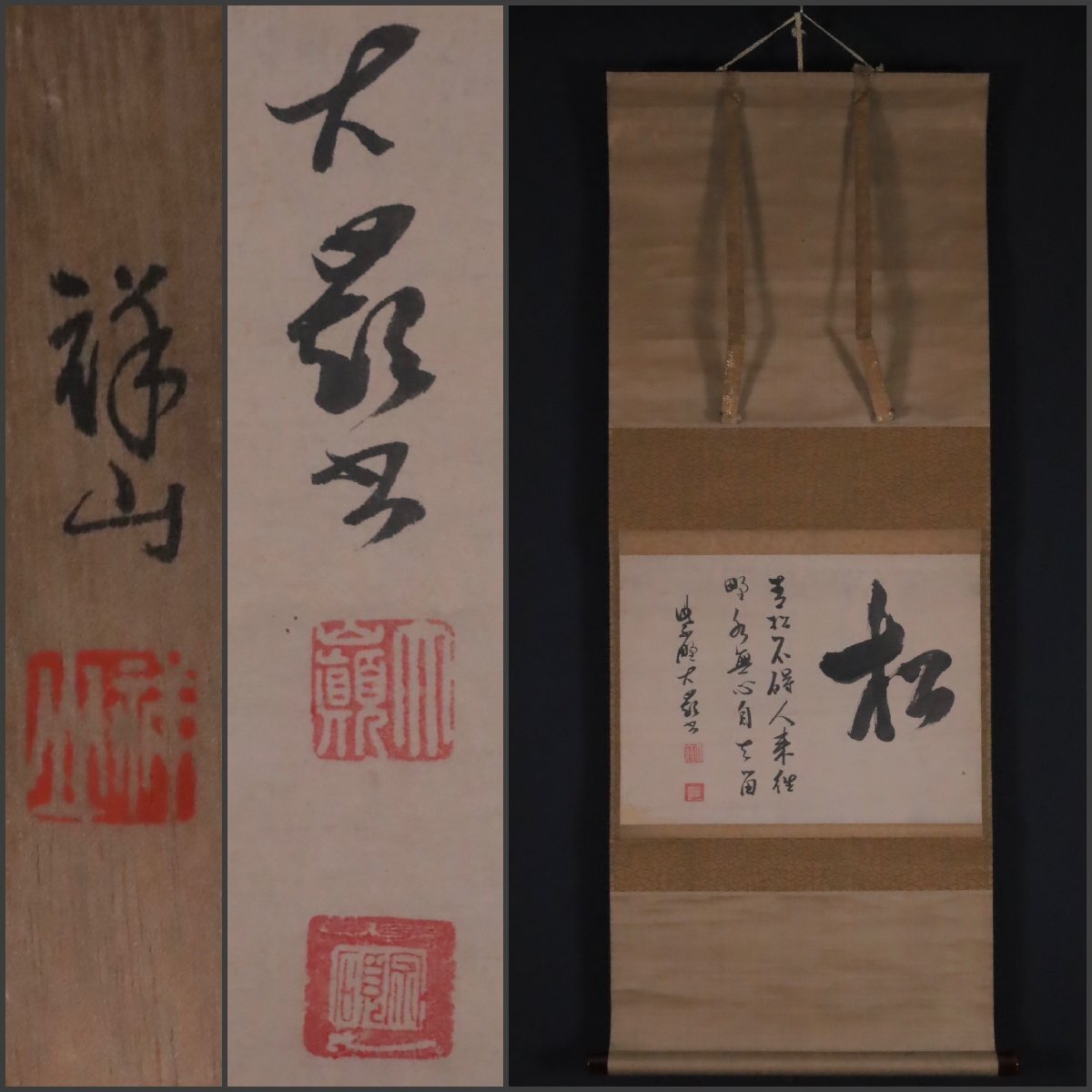 【模写】吉】11868 大巓宗碩 書 祥山極箱 月船禅慧師事 松平不昧修禅 臨済宗 仏教 墨蹟 茶掛け 茶道具 掛軸 掛け軸 骨董品